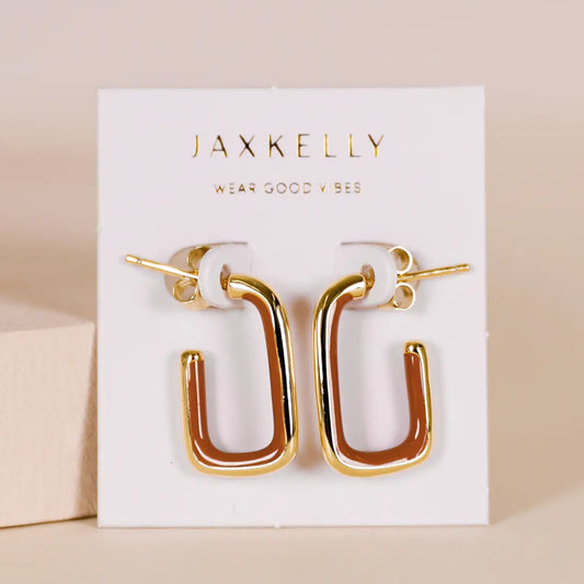 Enamel Large Rectangle Gold Hoops
