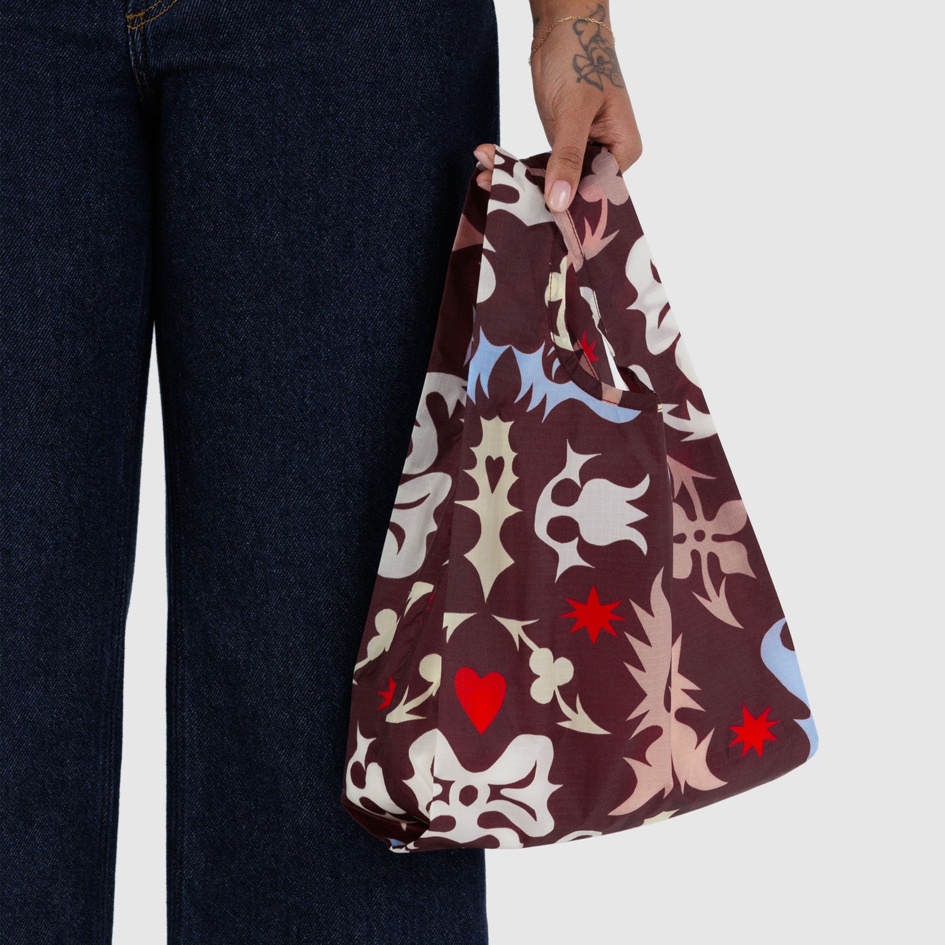 A smaller version of Baggu's original reusable shopping bag. Perfect for your lunch, a six pack, extra shoes, or a trip to the corner store.