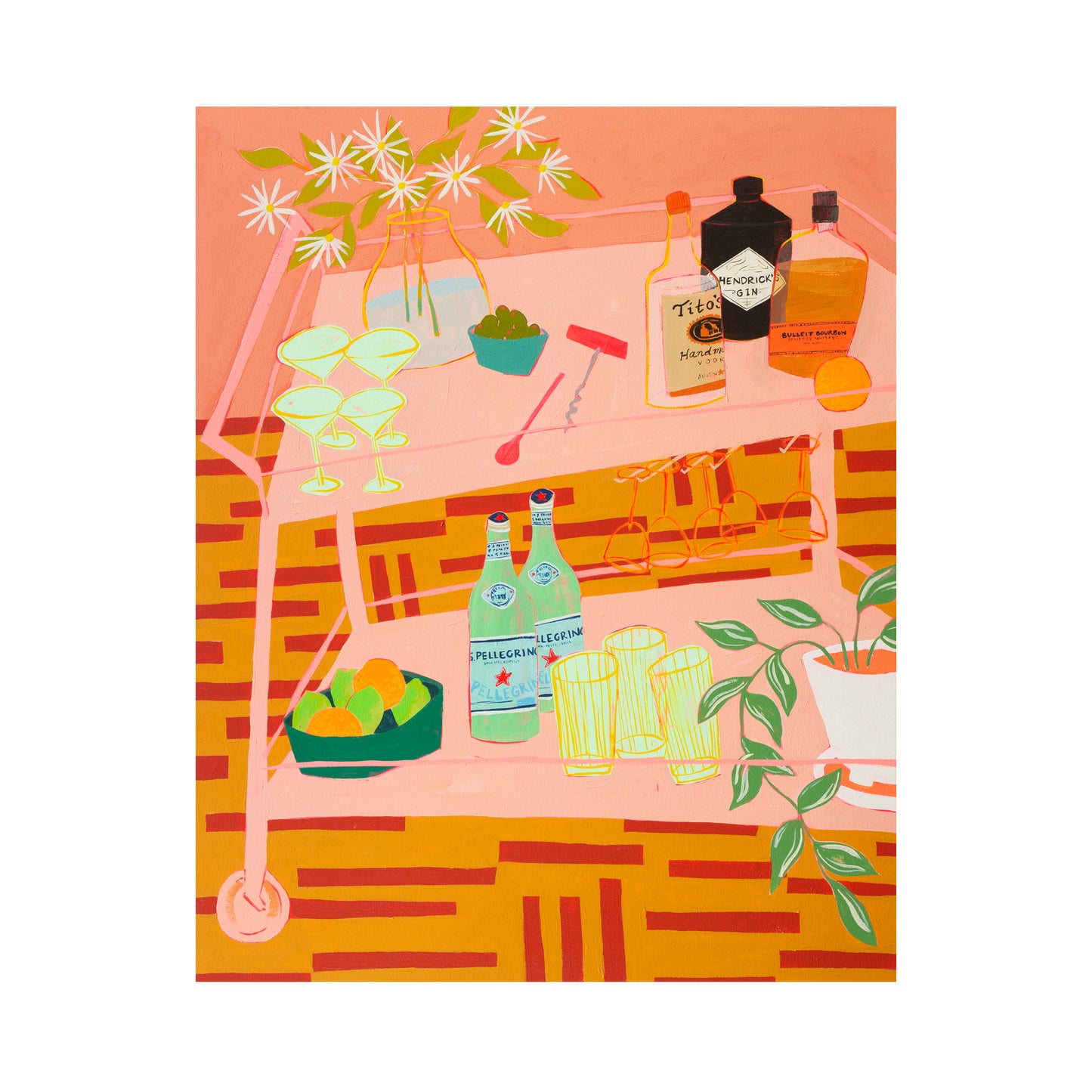 Print reproduction of Bailey Schmidt's painting 'Bar Cart' on textured fine art paper.