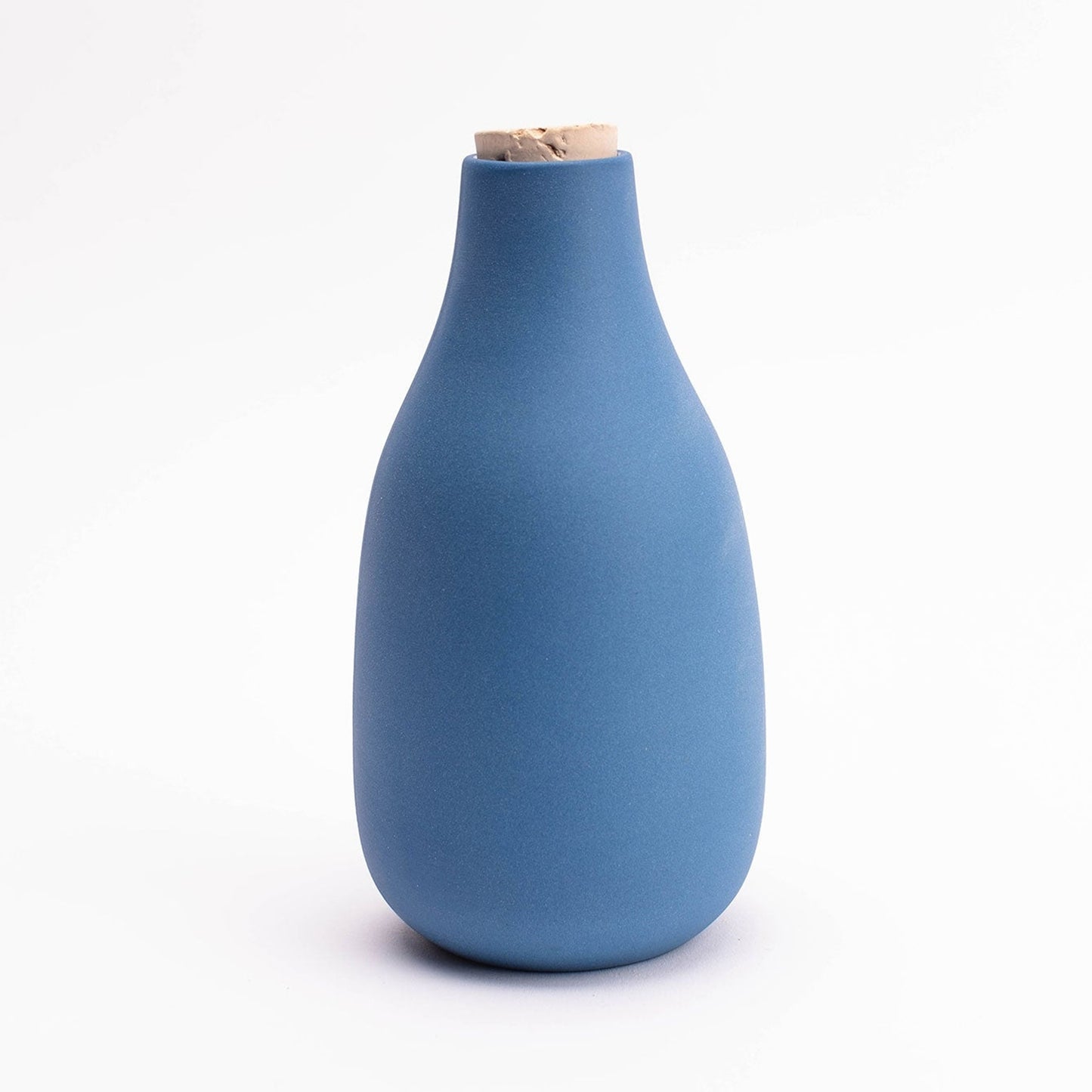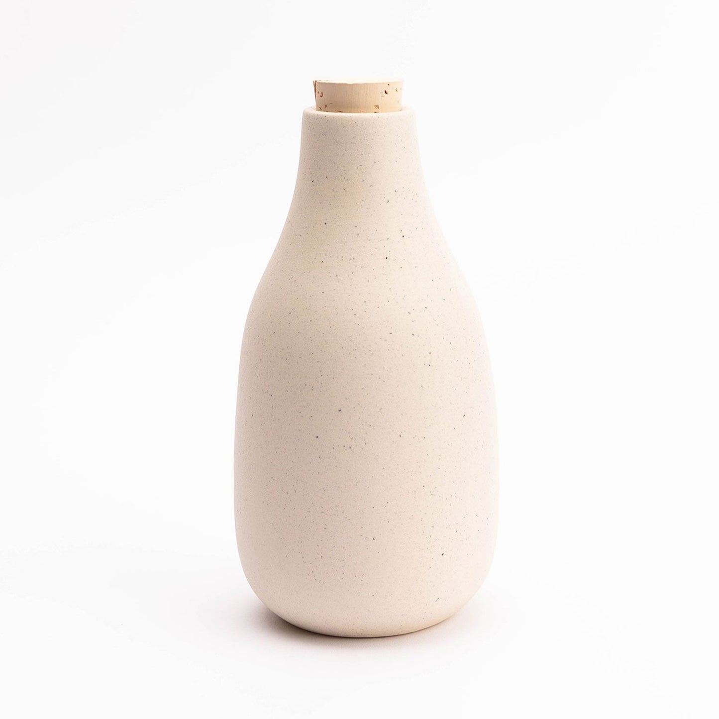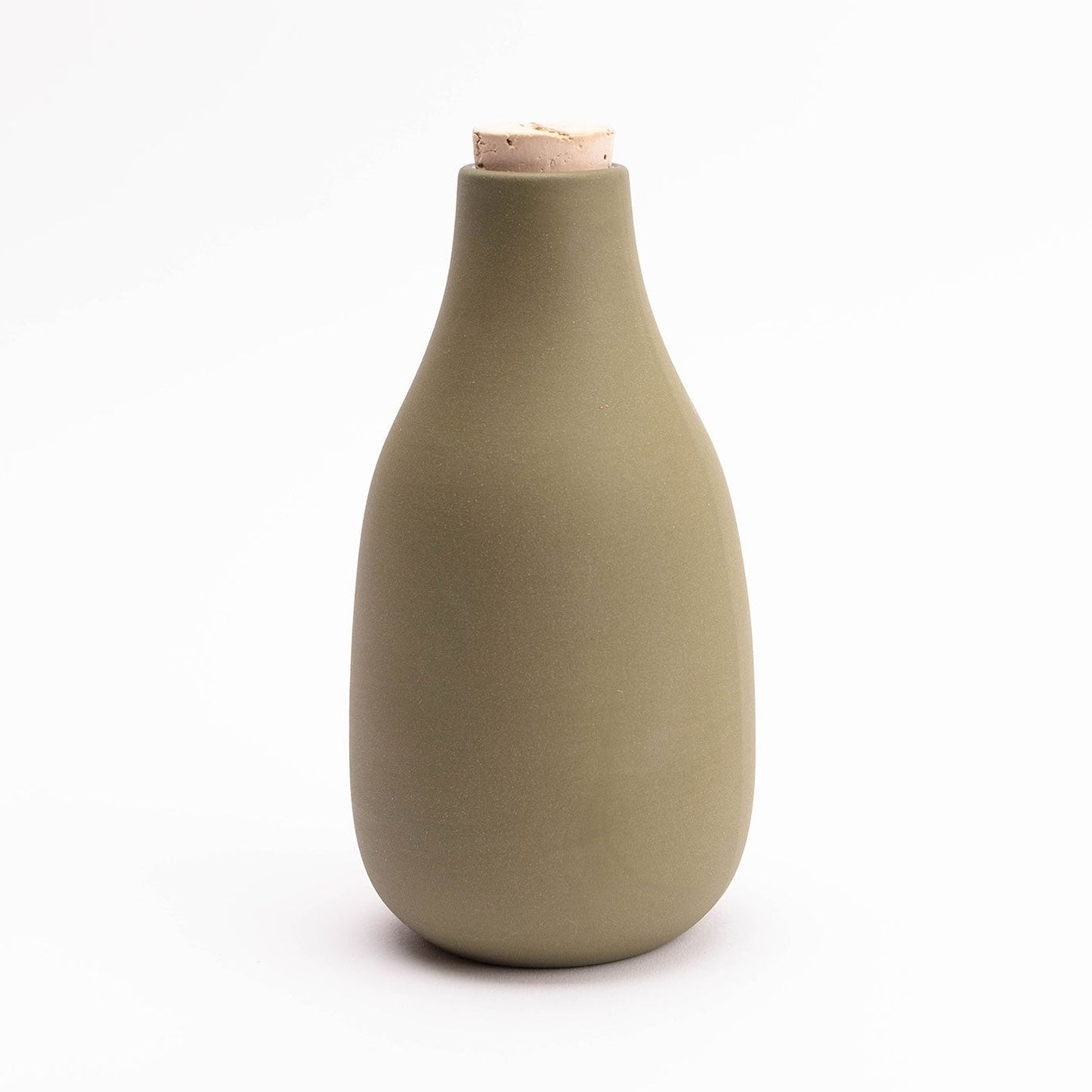 Classic and simple, this bottle-shaped carafe is ready to hold wine, water, or flowers (this Carafe welcomes all uses). Available in an array of tinted clay colors, with a raw, sanded exterior, an interior gloss liner glaze for easy cleaning, and a cork stopper to keep contents contained.