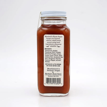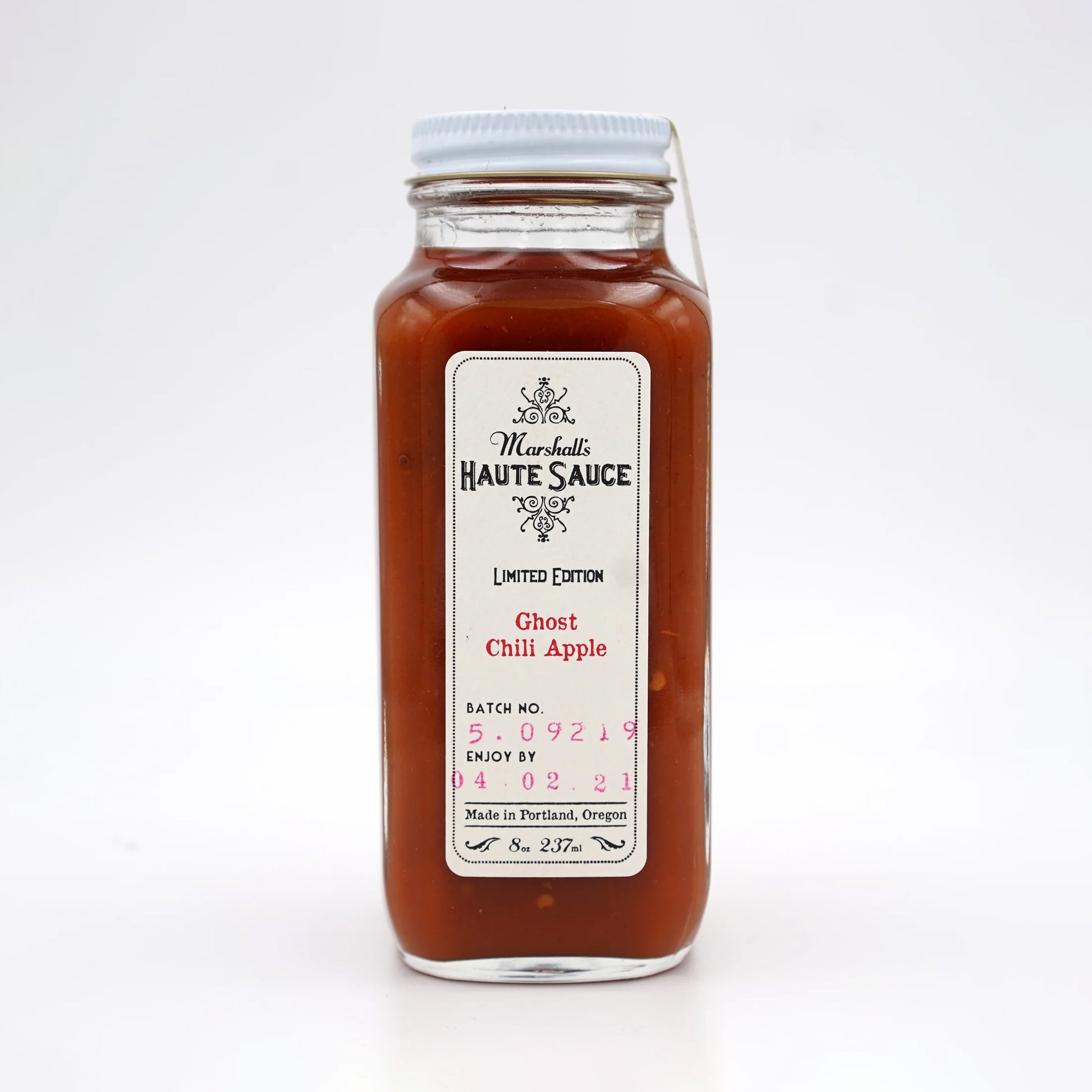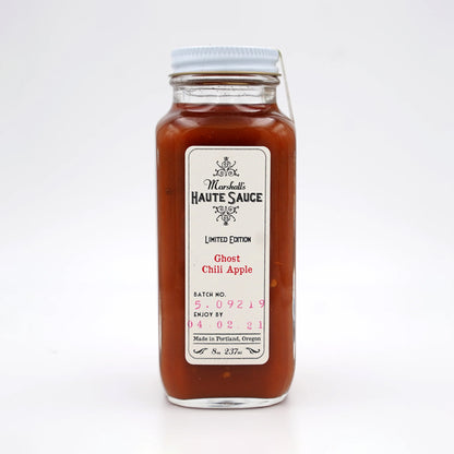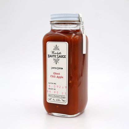 Yes, that ghost chili. This notoriously spicy pepper has earned its reputation as one of the true heart-breakers of the chili world—it’s every bit as formidable as everyone says it is. And while this sauce doesn’t seek to tame it—we’re crazy for heat, after all—we wanted to make it as approachable as possible. The natural sweetness of fresh local Honey crisp apples provide a calming counterpoint to the fiery ghost chilies, while a bit of citrus and vinegar bring additional balance and contrast, resulting in a sauce that’s as flavorful and interesting as it is spicy. Which is to say, very! If you’re new to ghost chili sauce, add it to your meal sparingly at first. We think it makes a great match for Black Bean Burgers WIth Ghost Chili Apple Slaw.