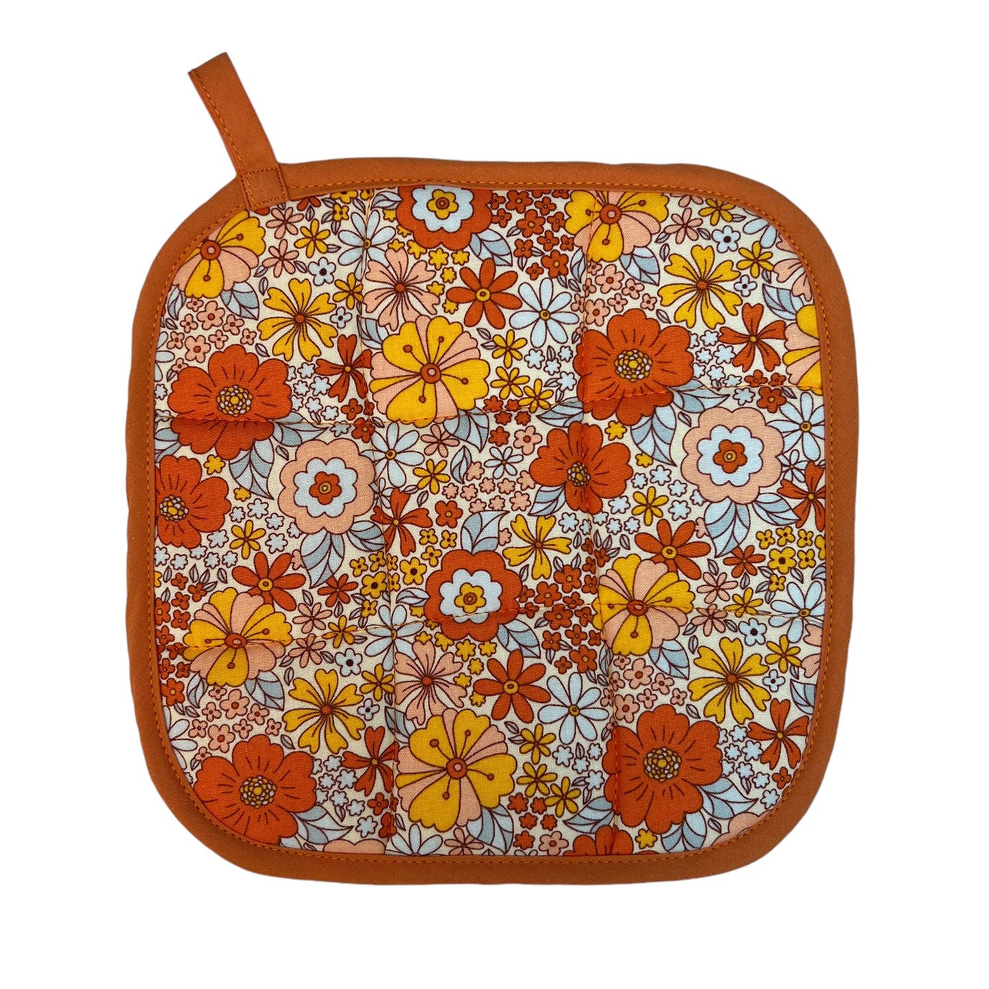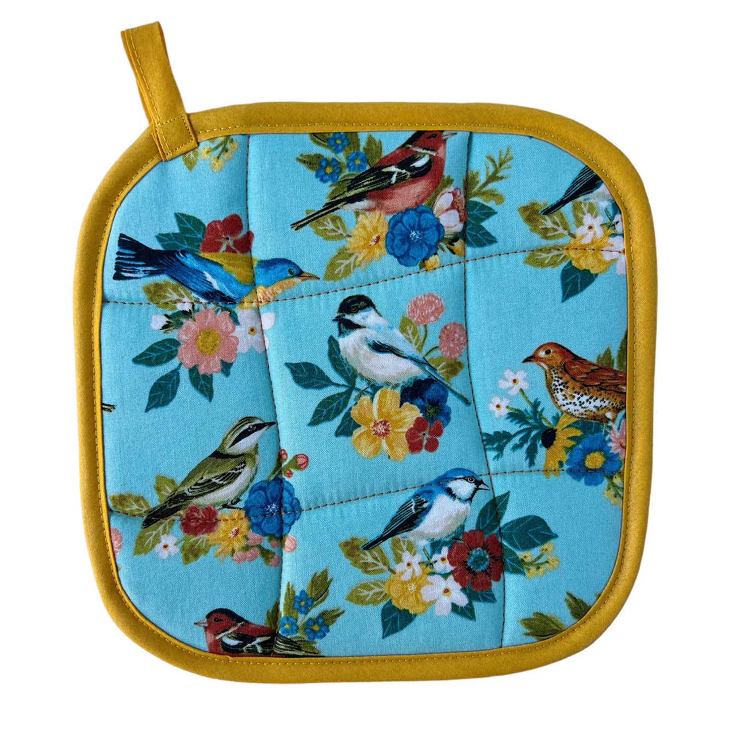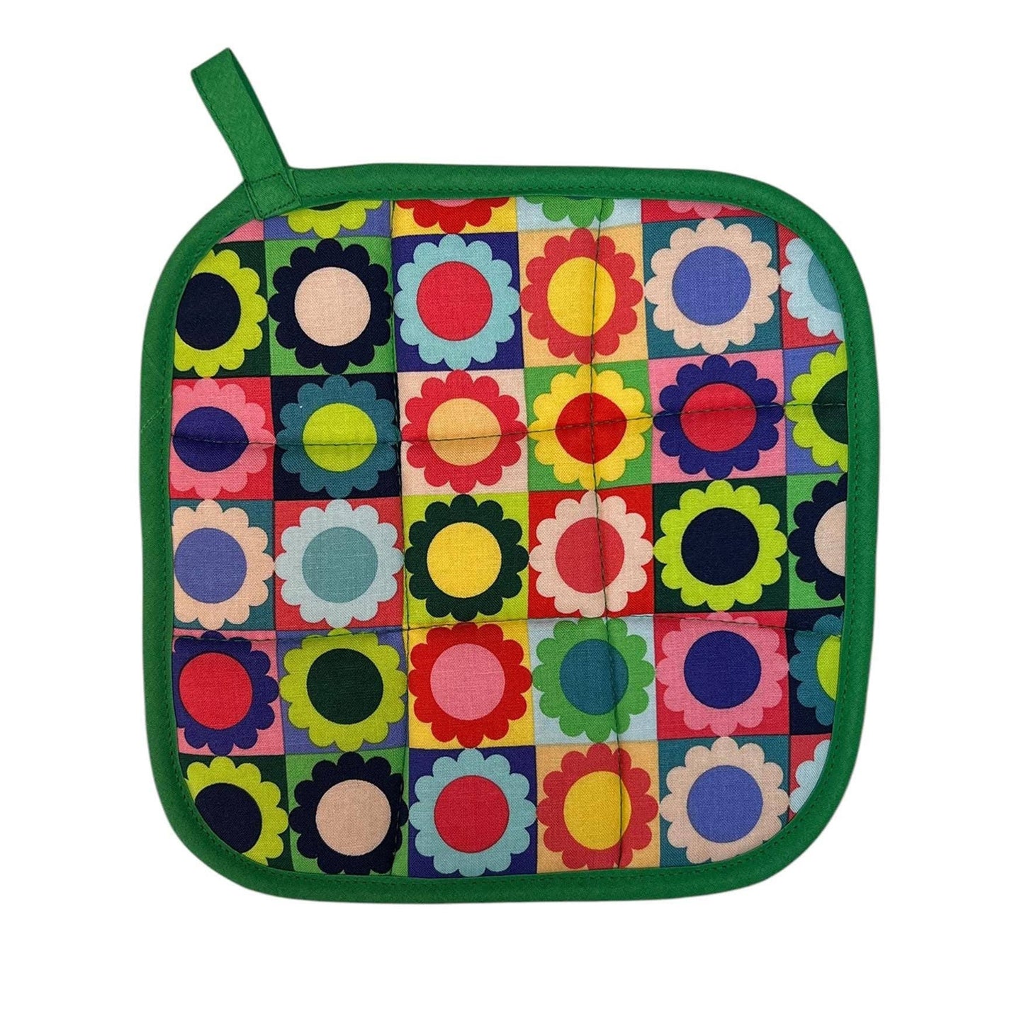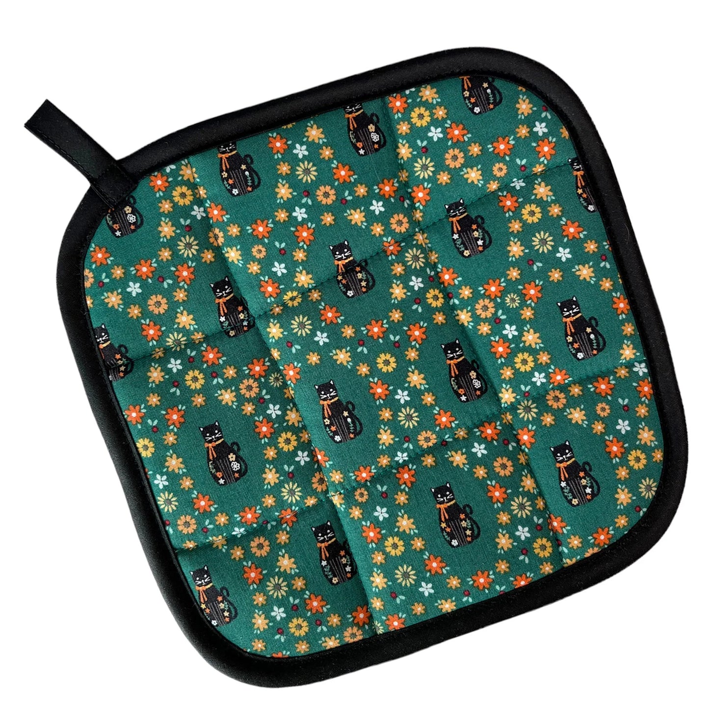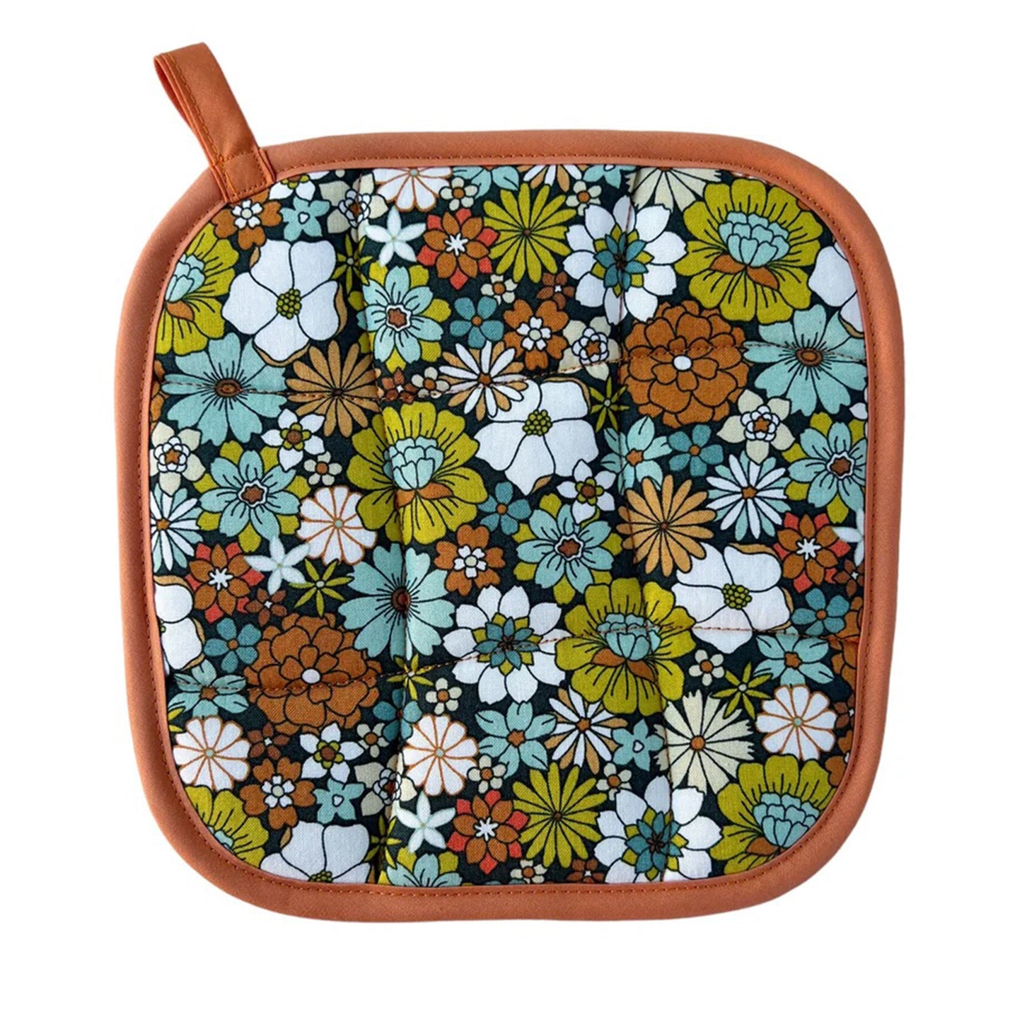 CARE INSTRUCTIONS: Machine wash cold/warm. Tumble dry low or lay flat to dry. Do not wash or dry on high heat. Please be cautious of large open flames. Pot holders are heat resistant but not fireproof.