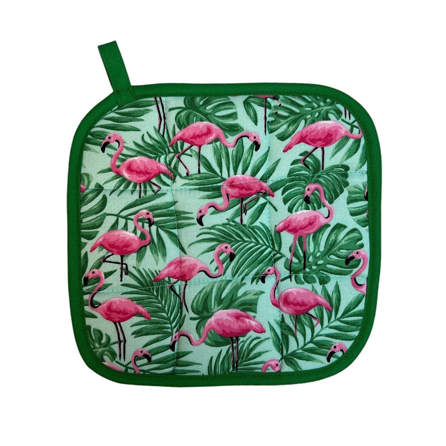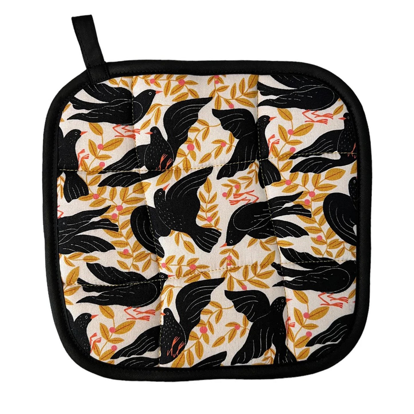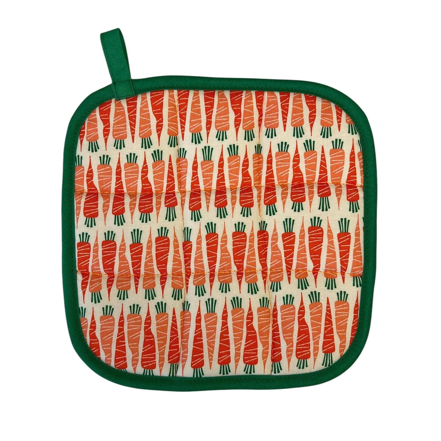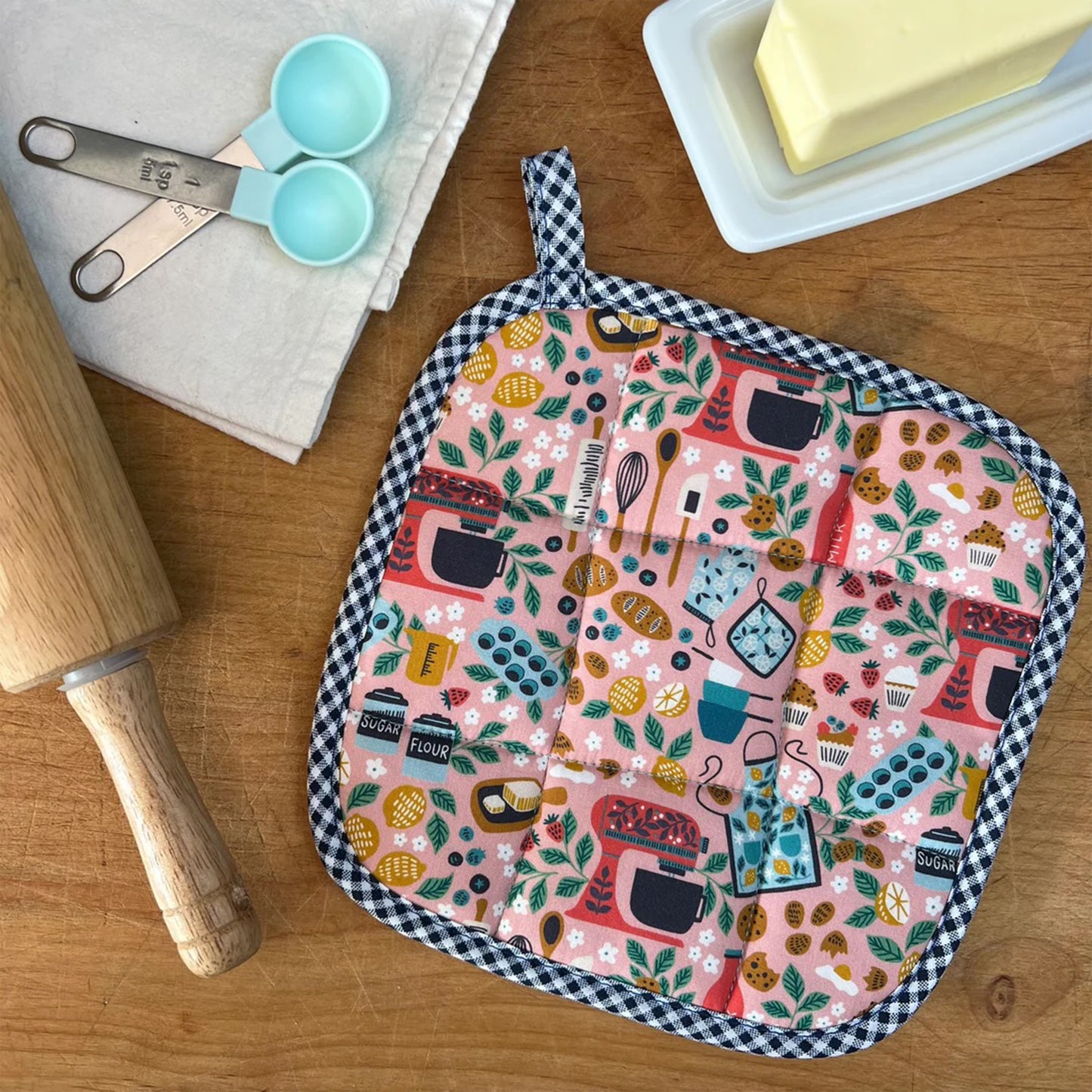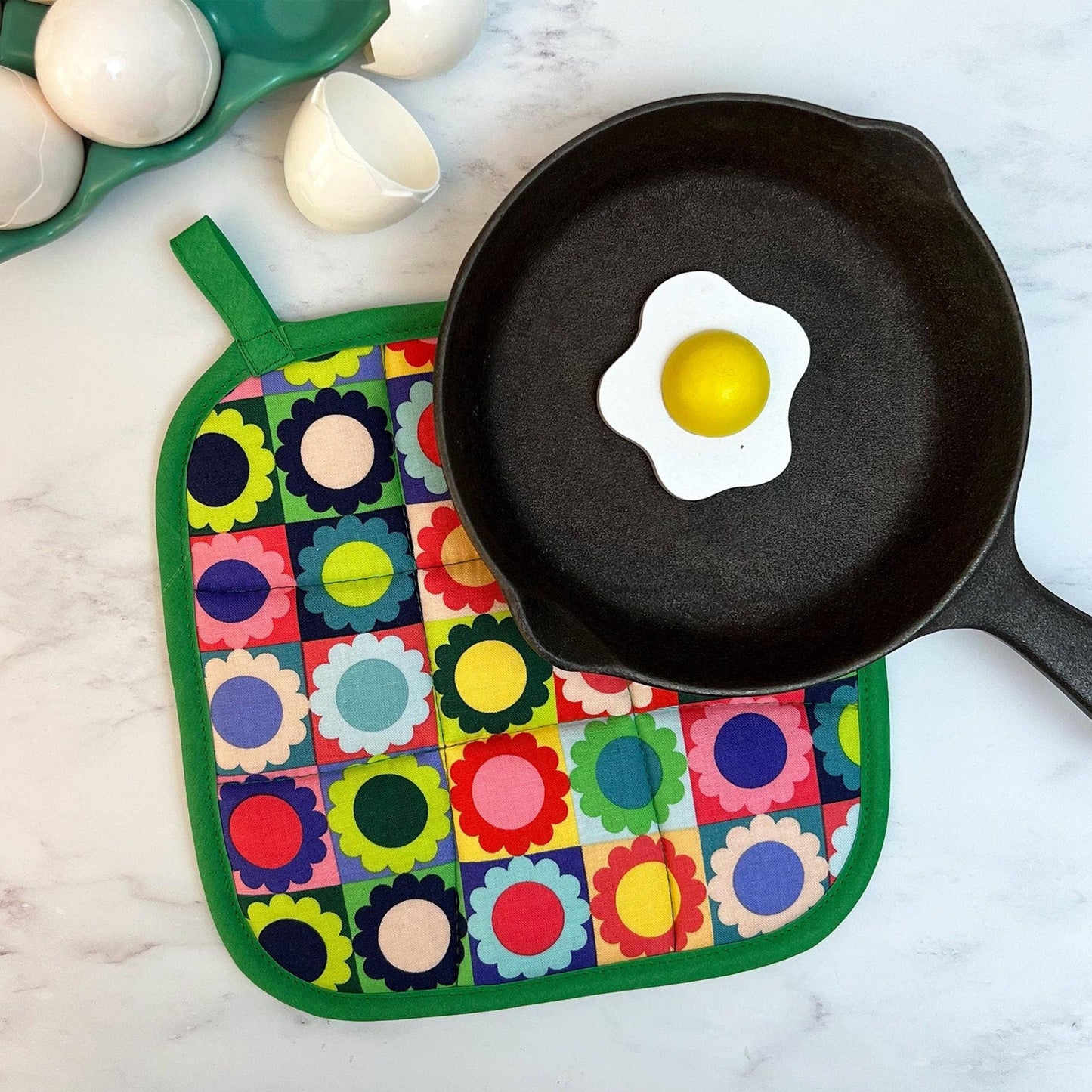 CARE INSTRUCTIONS: Machine wash cold/warm. Tumble dry low or lay flat to dry. Do not wash or dry on high heat. Please be cautious of large open flames. Pot holders are heat resistant but not fireproof.