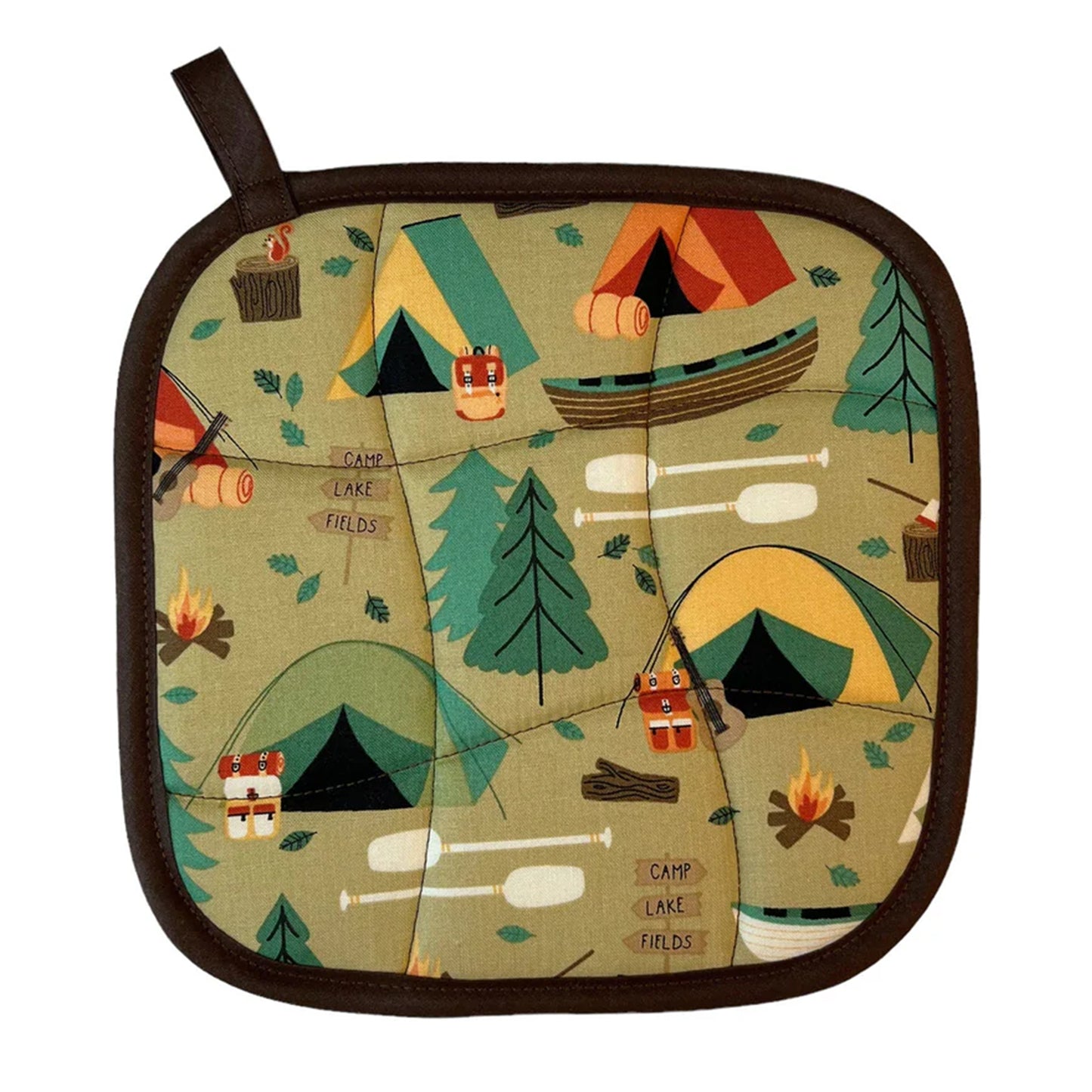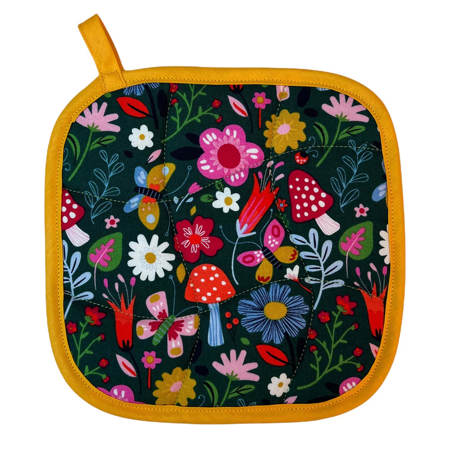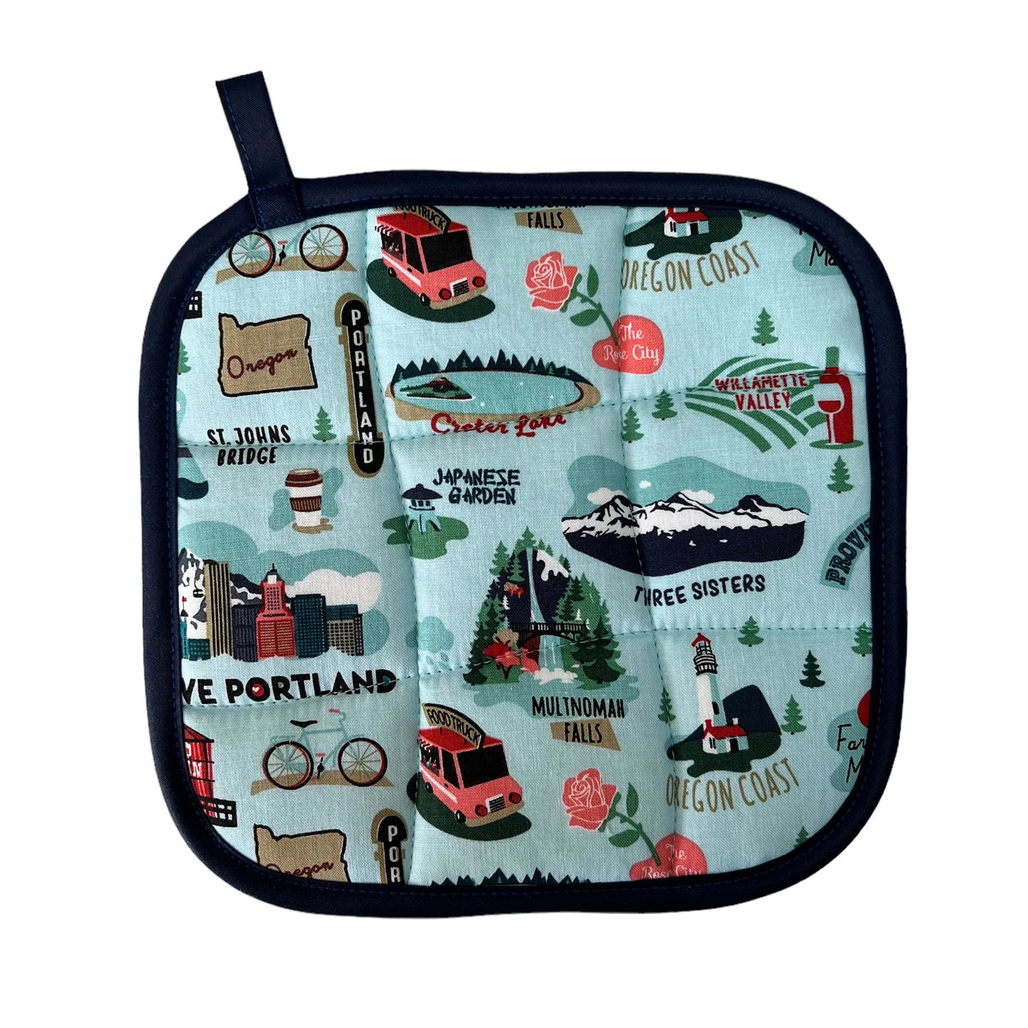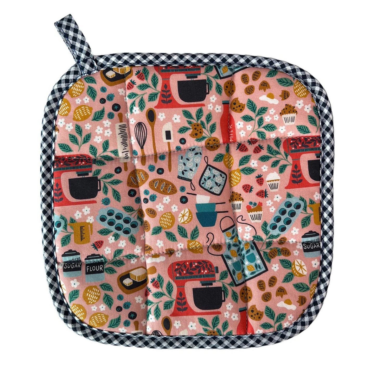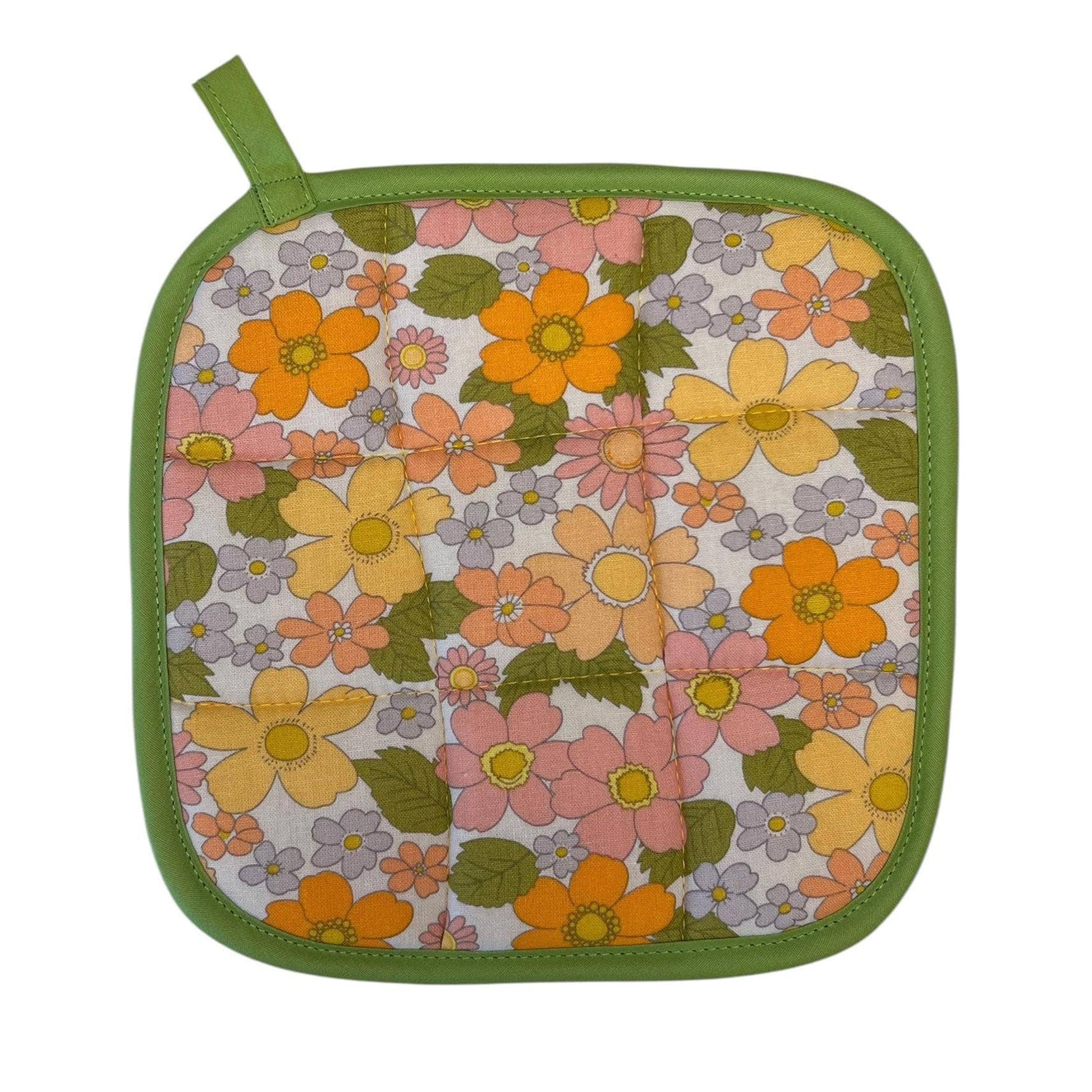 CARE INSTRUCTIONS: Machine wash cold/warm. Tumble dry low or lay flat to dry. Do not wash or dry on high heat. Please be cautious of large open flames. Pot holders are heat resistant but not fireproof.
