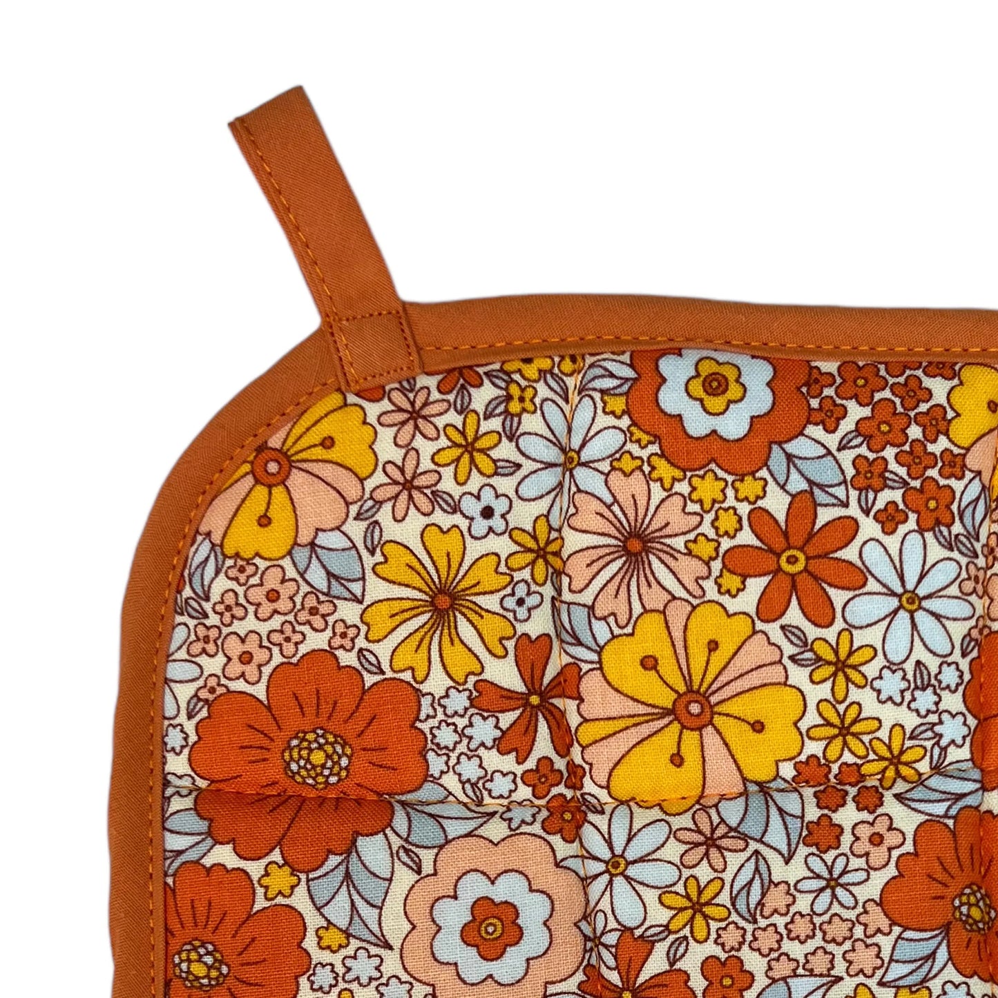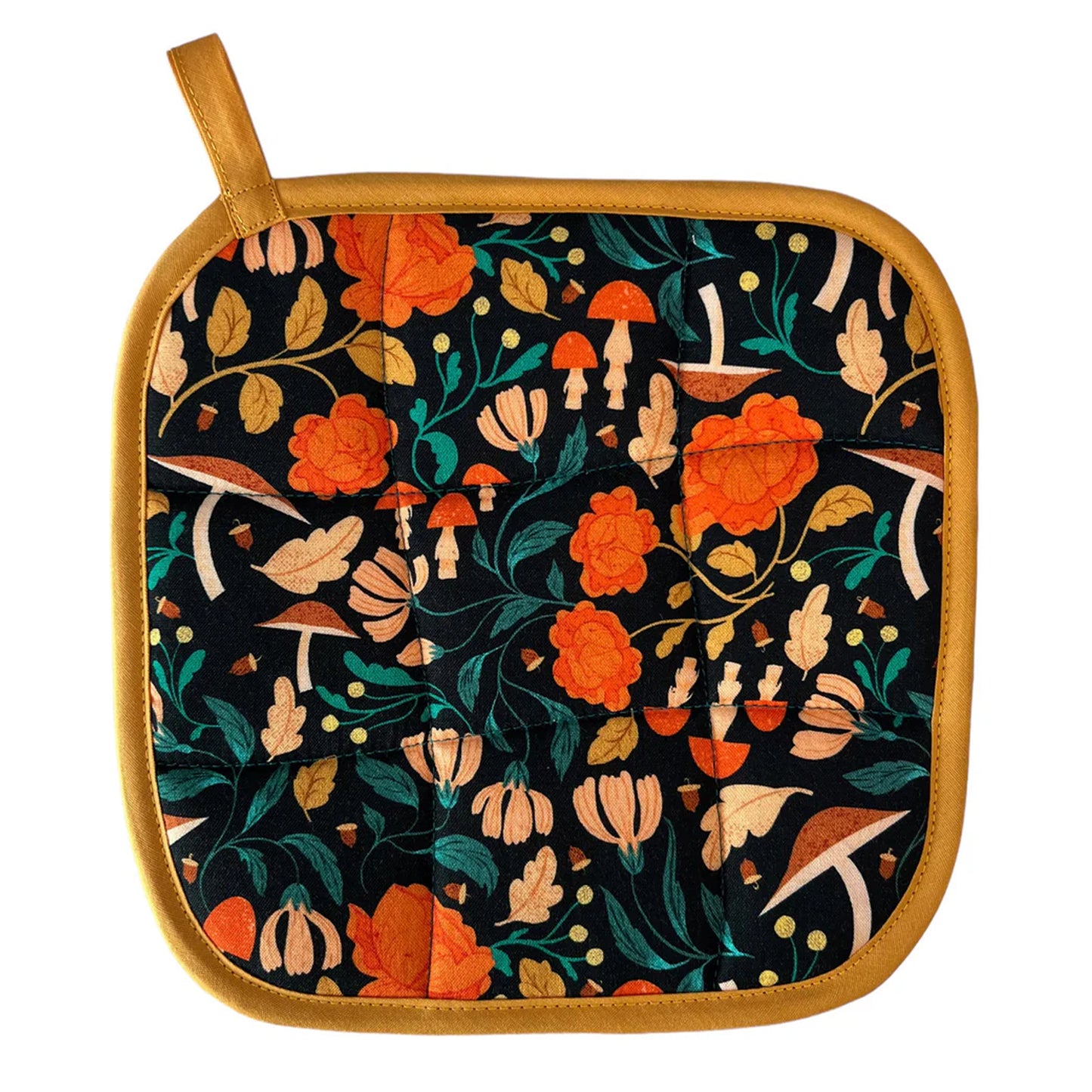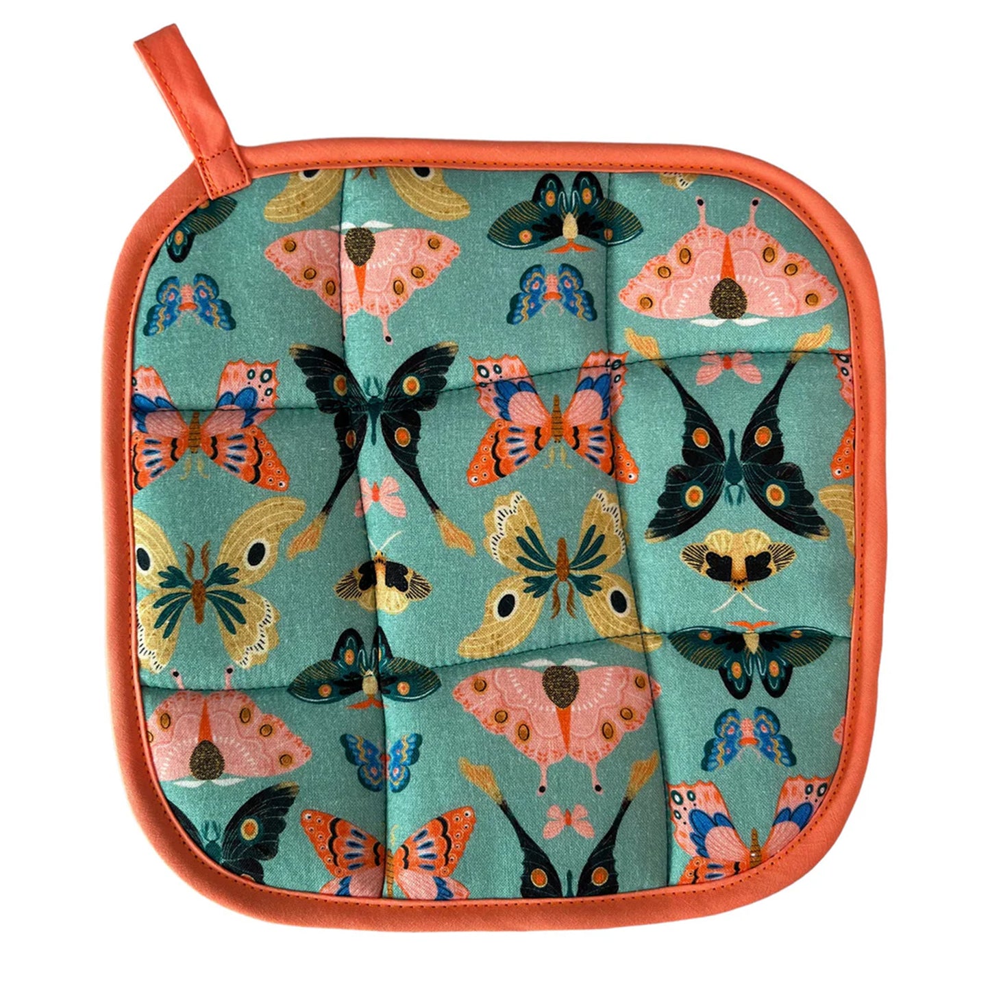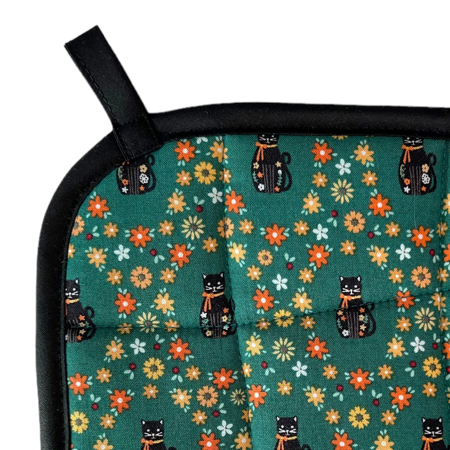CARE INSTRUCTIONS: Machine wash cold/warm. Tumble dry low or lay flat to dry. Do not wash or dry on high heat. Please be cautious of large open flames. Pot holders are heat resistant but not fireproof.
