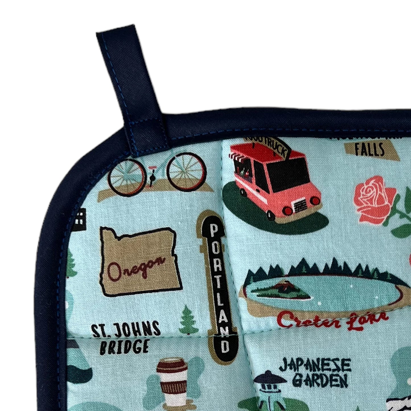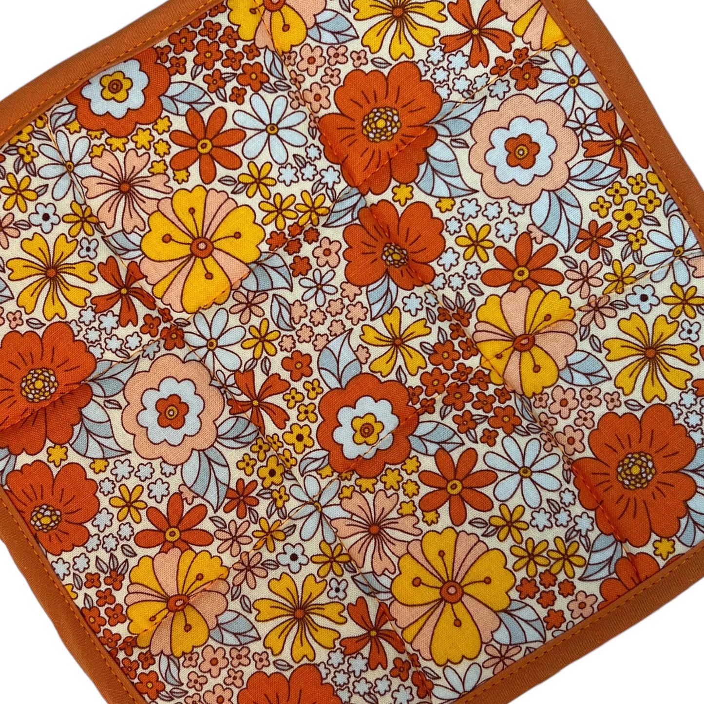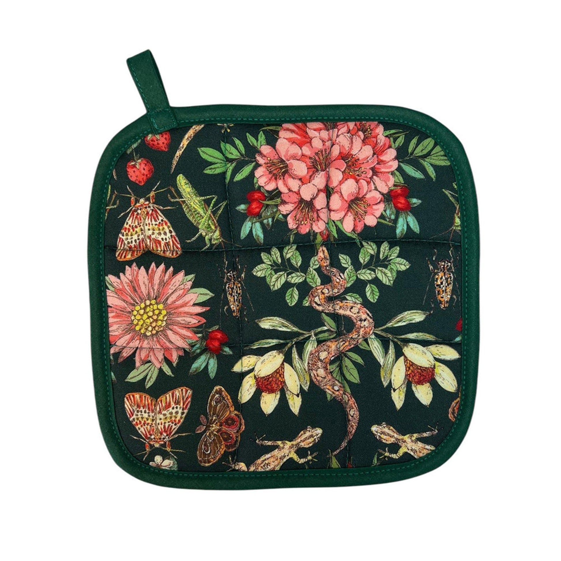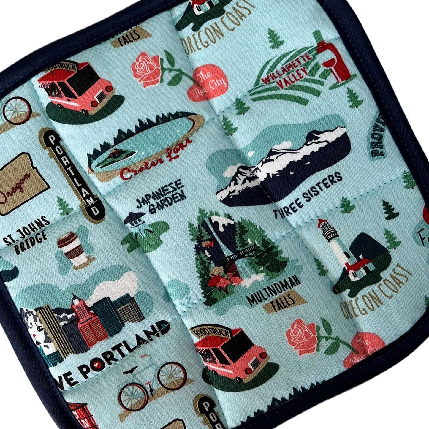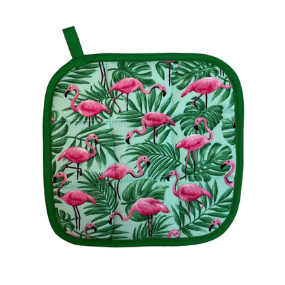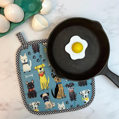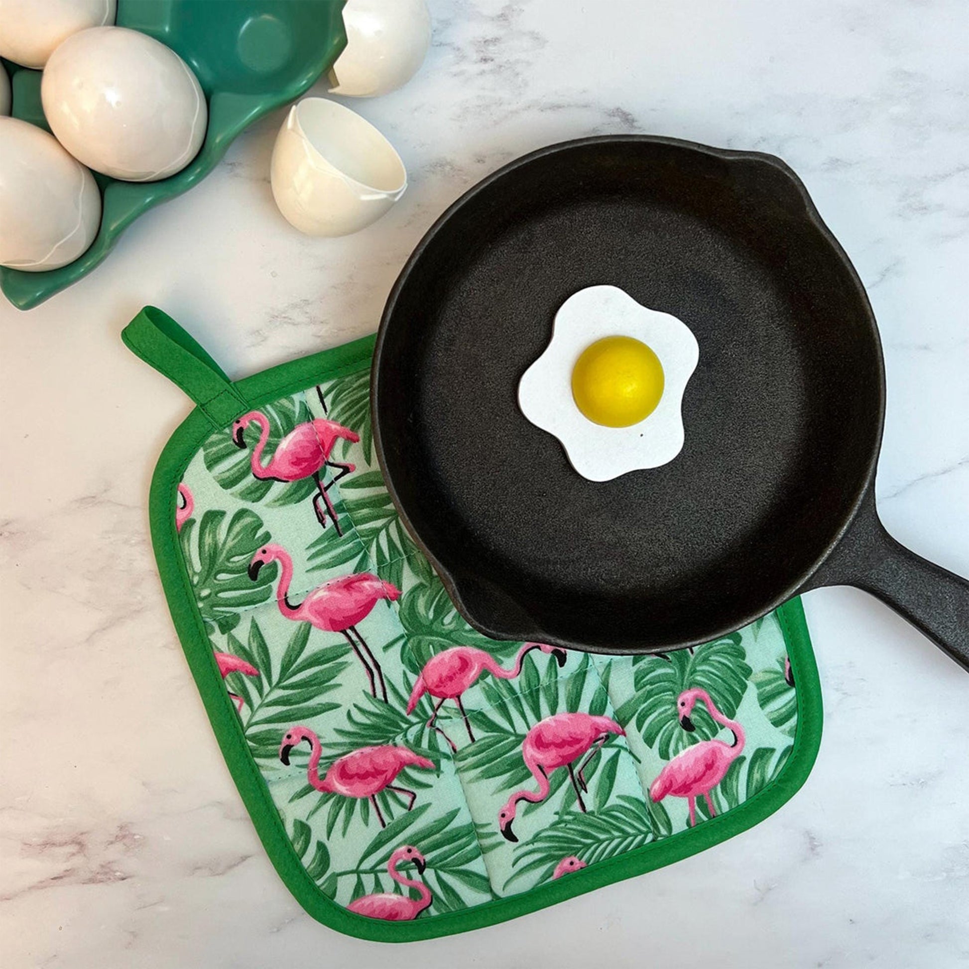 CARE INSTRUCTIONS: Machine wash cold/warm. Tumble dry low or lay flat to dry. Do not wash or dry on high heat. Please be cautious of large open flames. Pot holders are heat resistant but not fireproof.