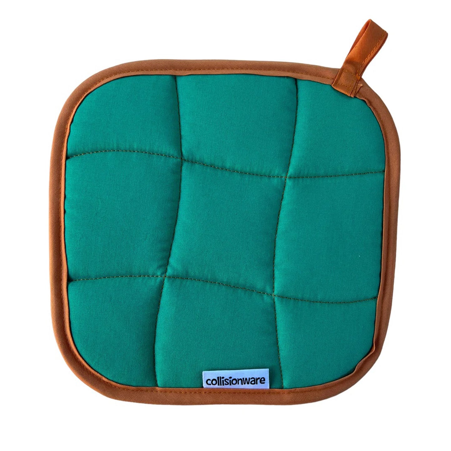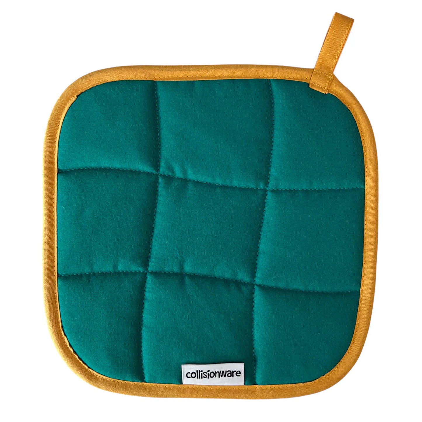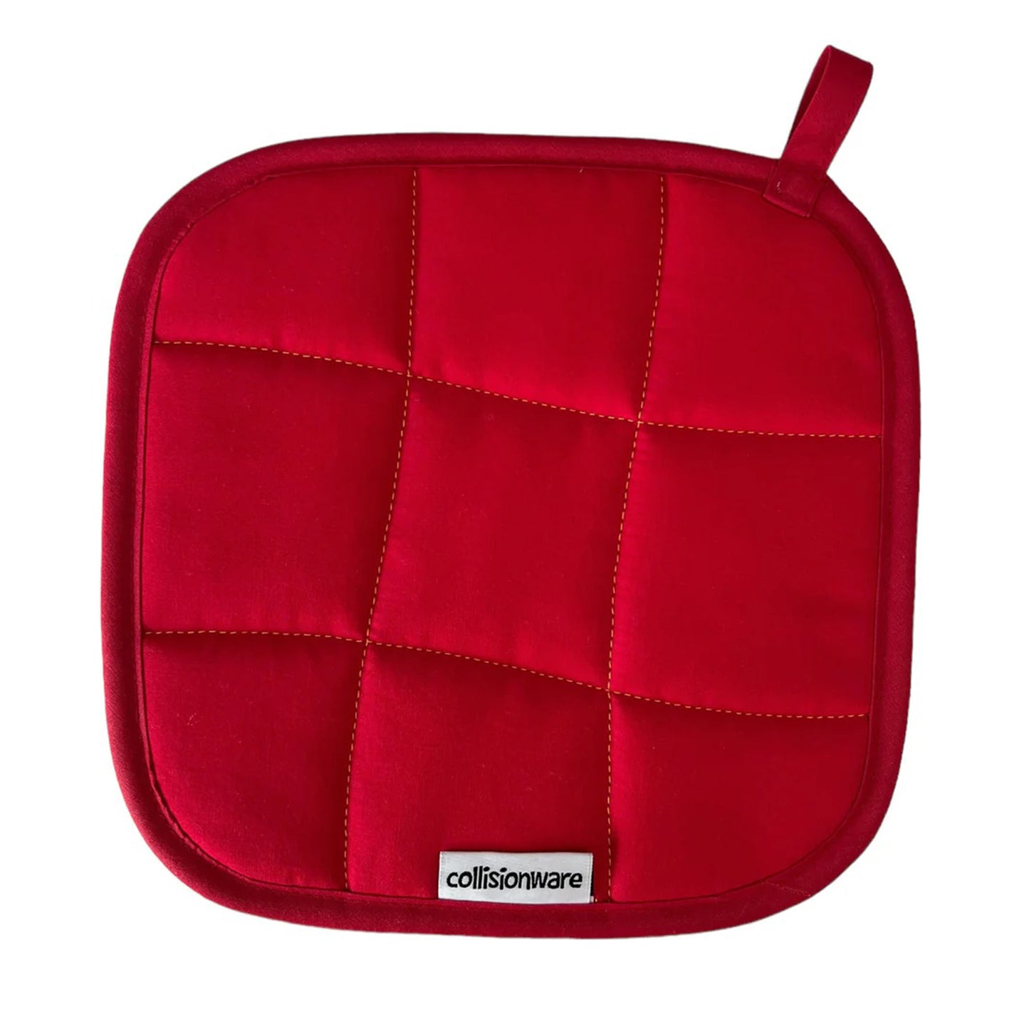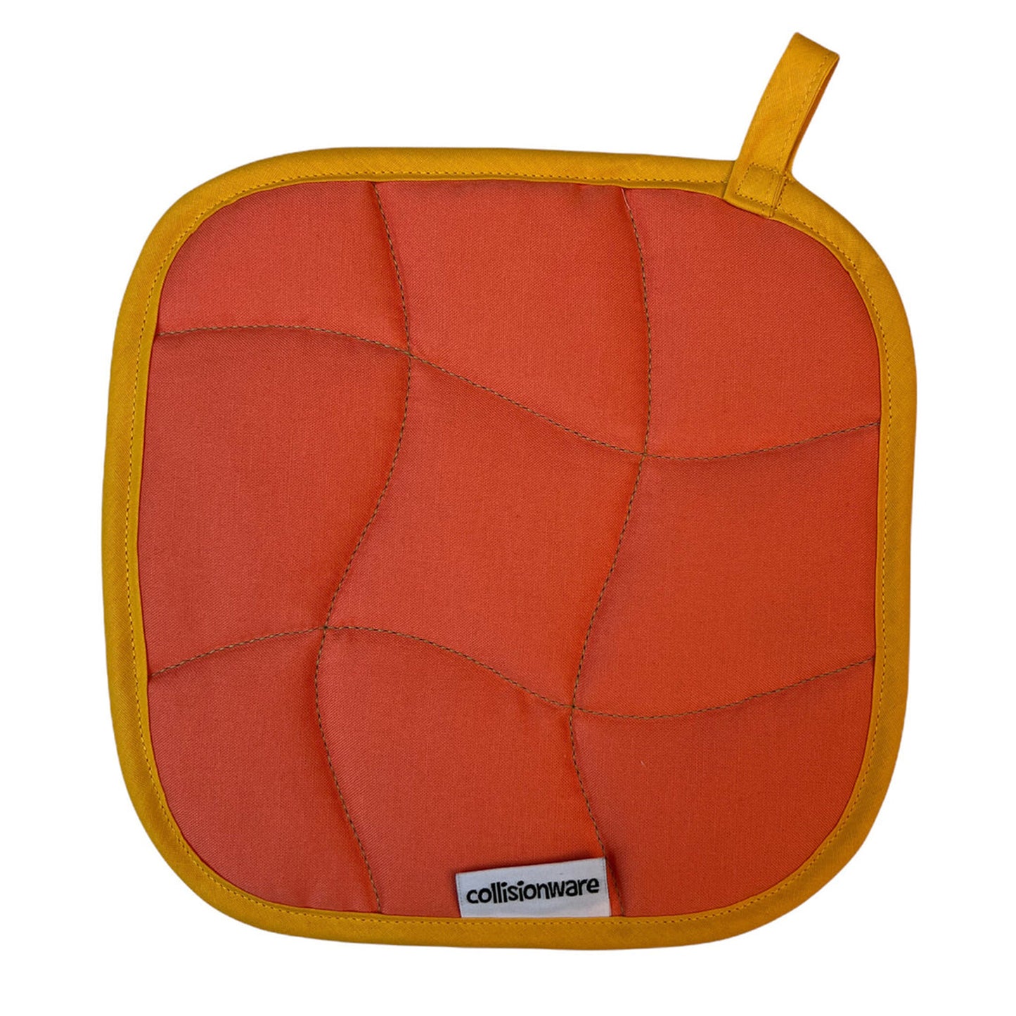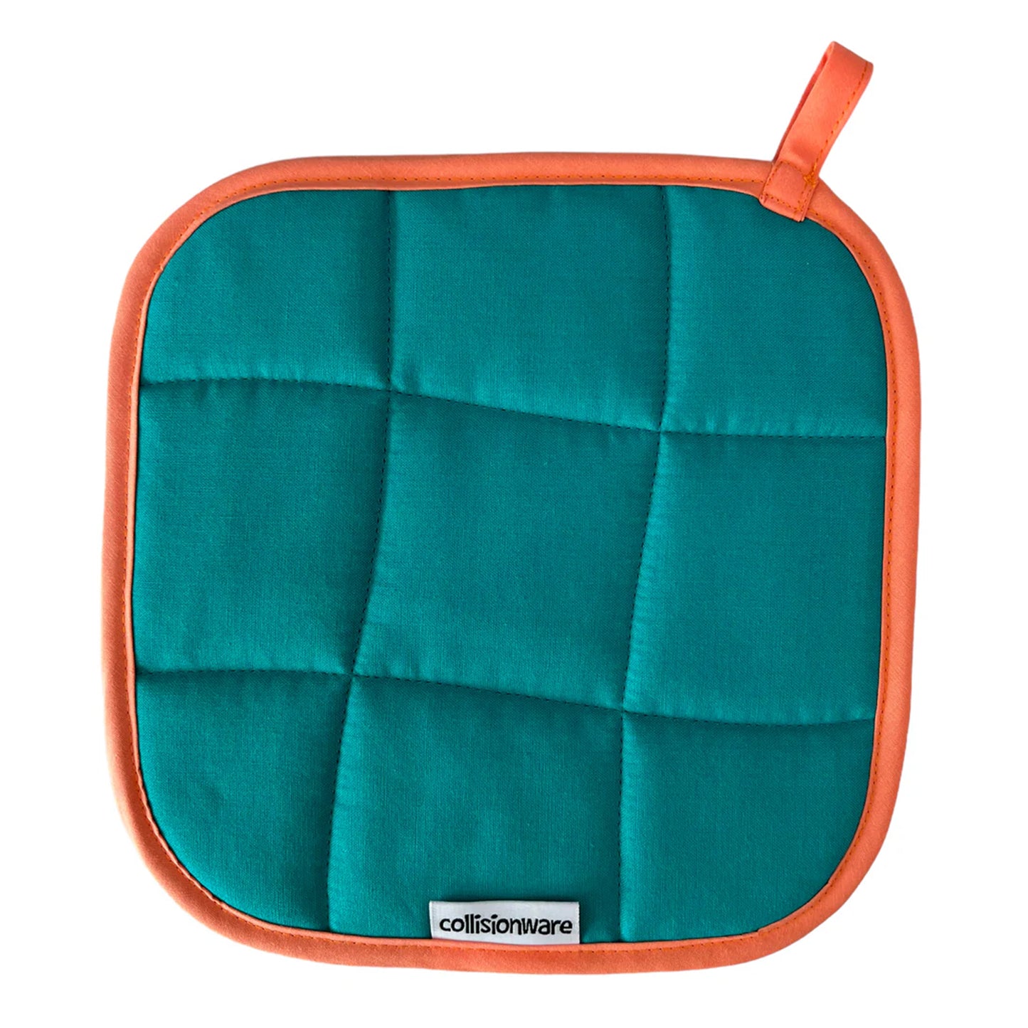 Collisionware was started in 2008 by Angie Diersman, a girl who loved crafts and had a dream of working for herself. In 2011, after many hours behind a buzzing sewing machine, she was able to pursue this new adventure full time. Specializing in handcrafted kitchenware, her line is bold and whimsical. Each piece adds an adorable edge while detracting from the old-fashioned wares you’d find in your grandmother’s home.