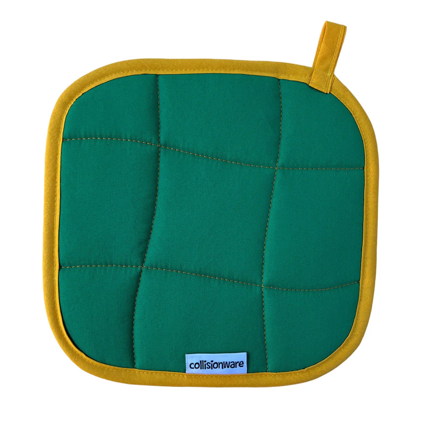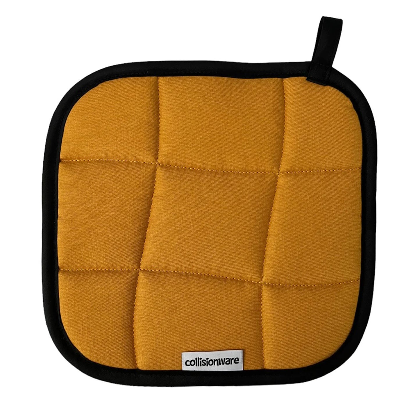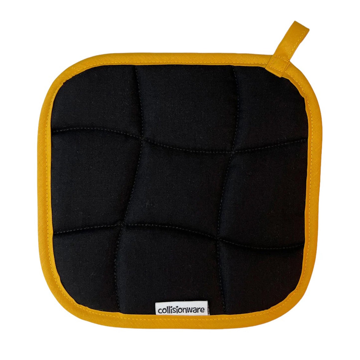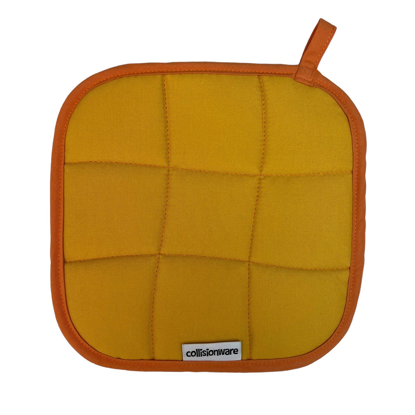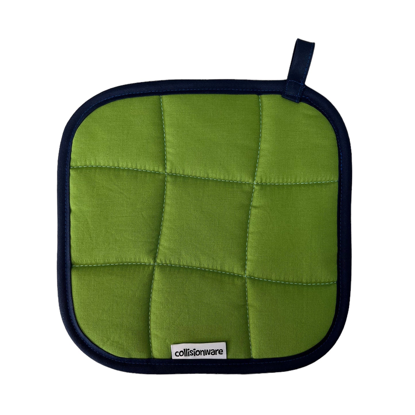 Collisionware was started in 2008 by Angie Diersman, a girl who loved crafts and had a dream of working for herself. In 2011, after many hours behind a buzzing sewing machine, she was able to pursue this new adventure full time. Specializing in handcrafted kitchenware, her line is bold and whimsical. Each piece adds an adorable edge while detracting from the old-fashioned wares you’d find in your grandmother’s home.