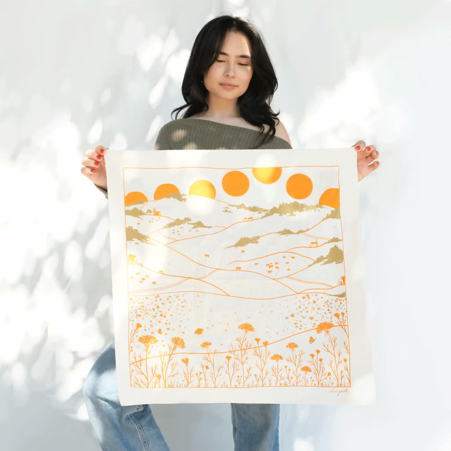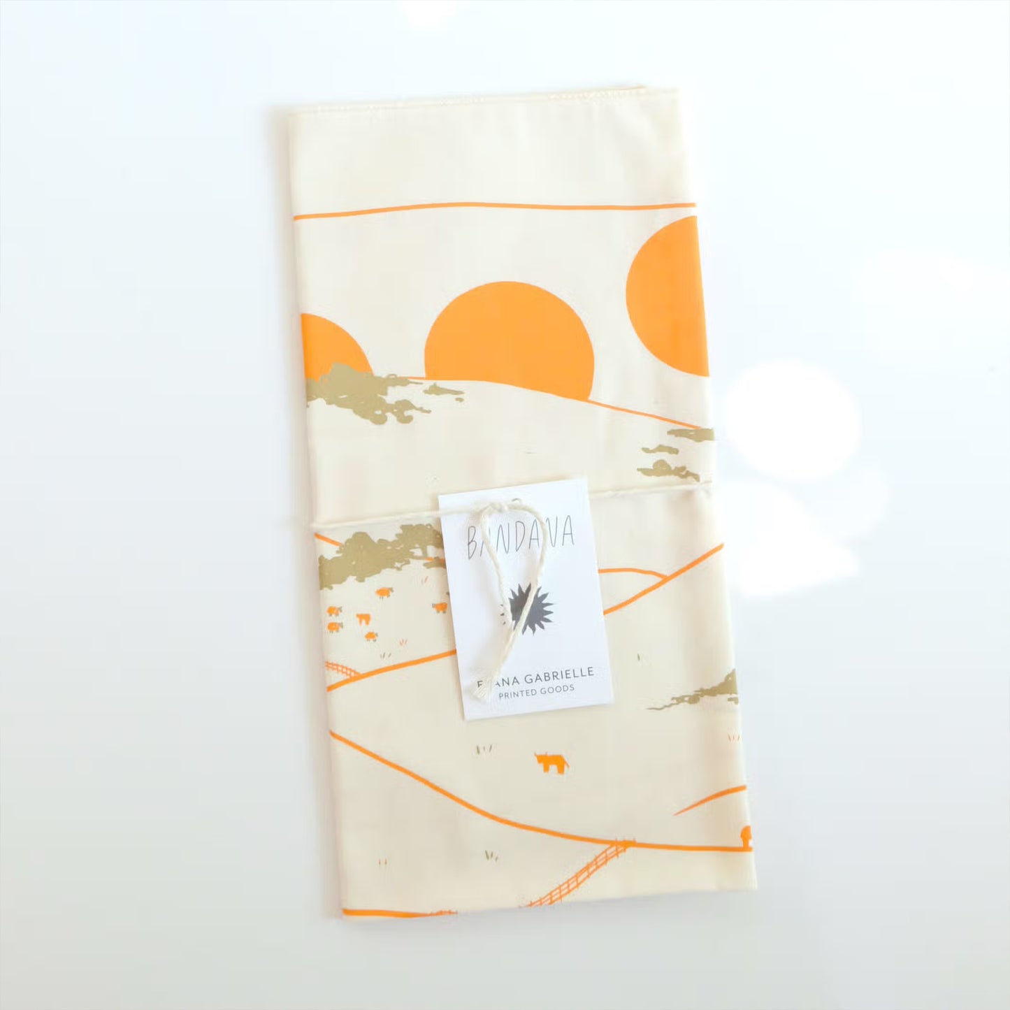 Bandanas are incredibly versatile and have been worn and used functionally for generations by sailors and seafarers, farmers, cowboys, babushkas, and more. I create these bandanas to continue a tradition of functional fabric that features a variety of colors, landscapes, and details. These bandanas are meant to be keepsakes, companions for everyday life and adventures.