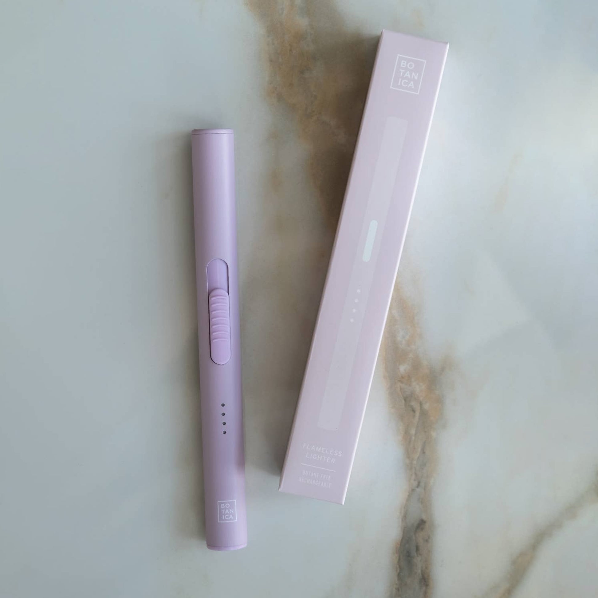 Get lit! Botanica's Flameless Lighters utilize single ARC technology, making for a clean, butane-free ignition for every candle lighting (and more!) These Flameless lighters recharge through a convenient USB port. A safety switch is included to make accidental lights a non-issue. Packed in a colorful gift box with a mini 5" USB-C cable, these are a thoughtful & handy addition for candle gifting.