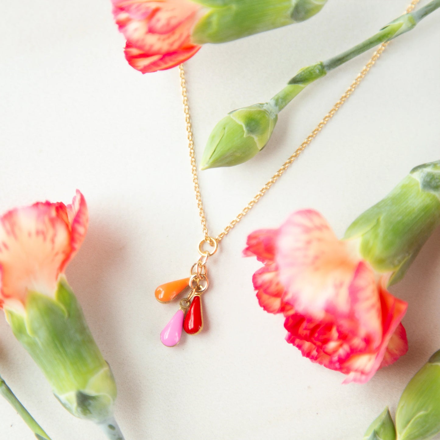 Frankie Teardrop Necklace in Red & Pink