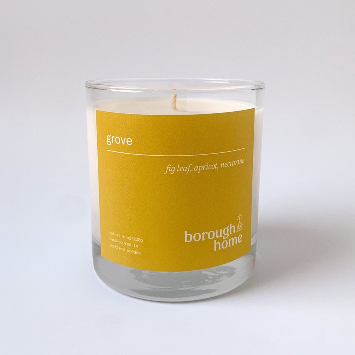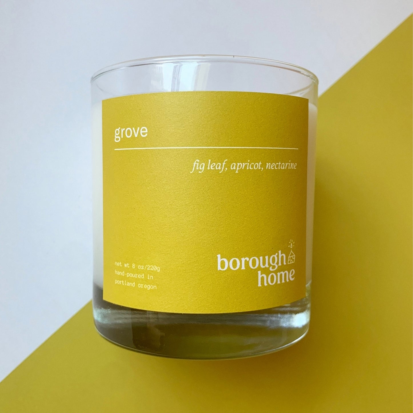 Grove is an ode to summer with its notes of fig leaves, juicy apricots and nectarines. Fresh, fruity but never cloying--the perfect scent for when you need a little sunshine8 oz / 220g. Approximate burn time 50 hours.