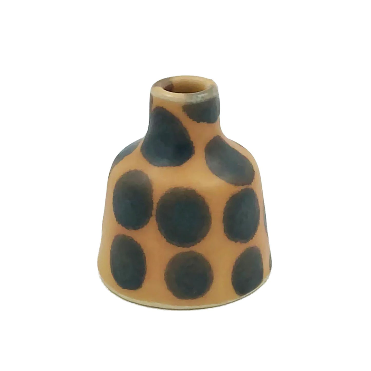 Made of porcelain and finished in a satin matte glaze that varies from yellow to orange, finished with black, free form dots that remind us of our favorite feline friends.
