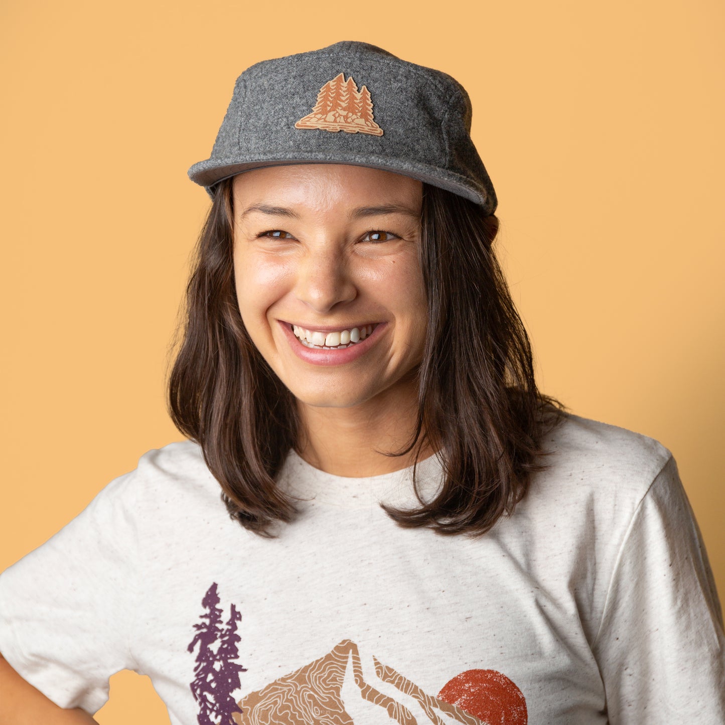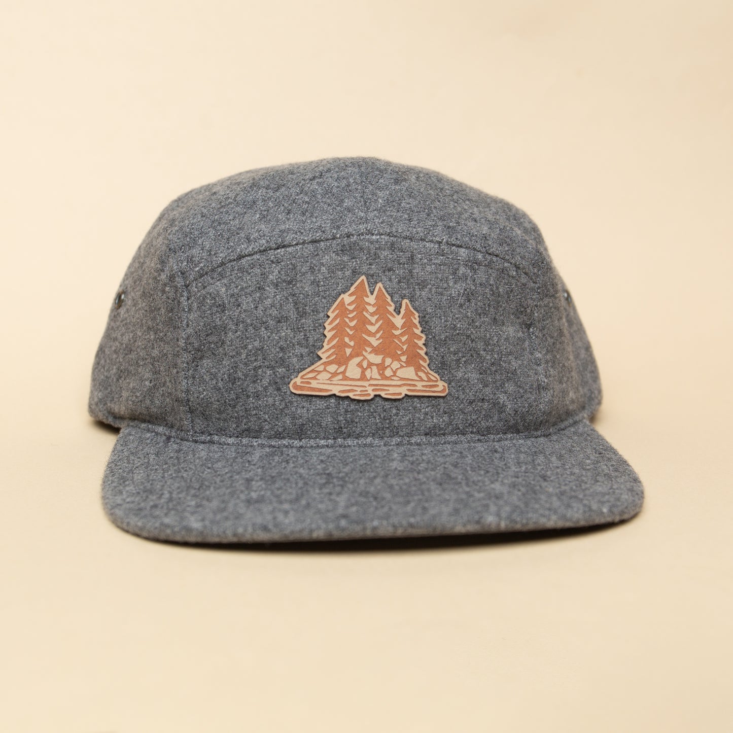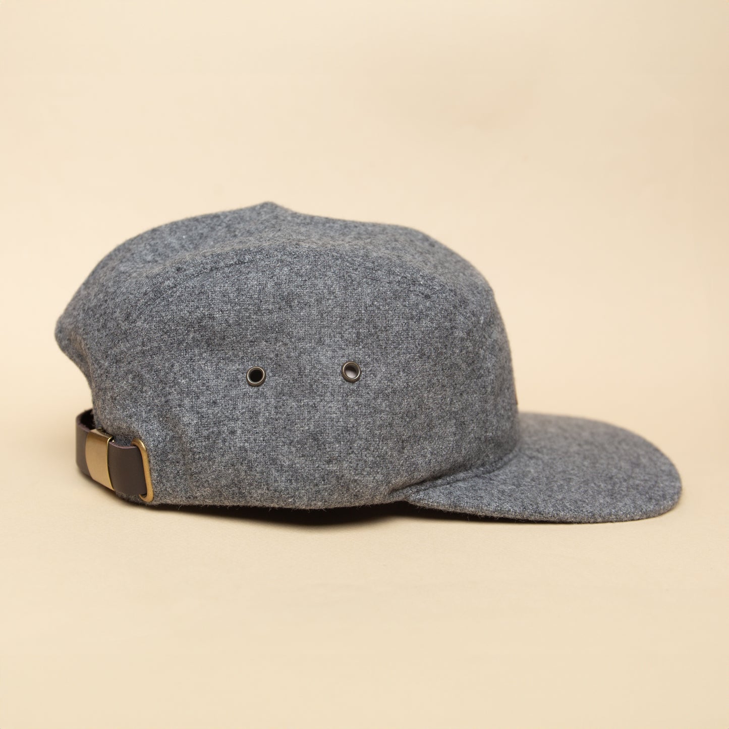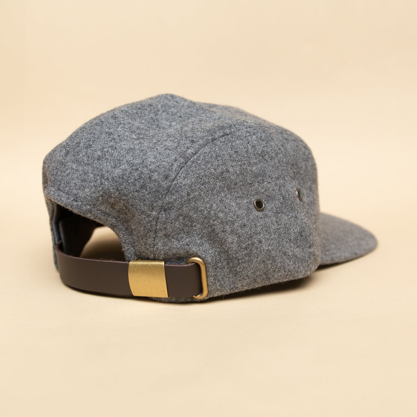 This refined design compliments any style and is warm to boot. Made from Premium Melton Wool, this flat bill, 5 Panel camper features a leather strapback with brass buckle & eyelet details.
