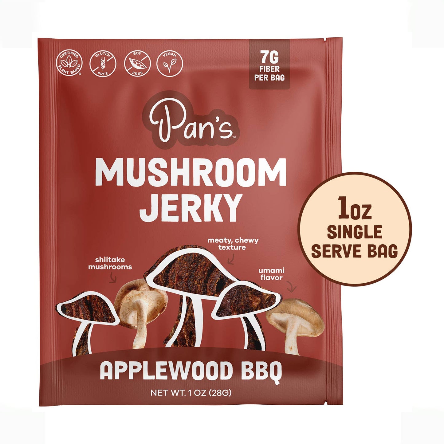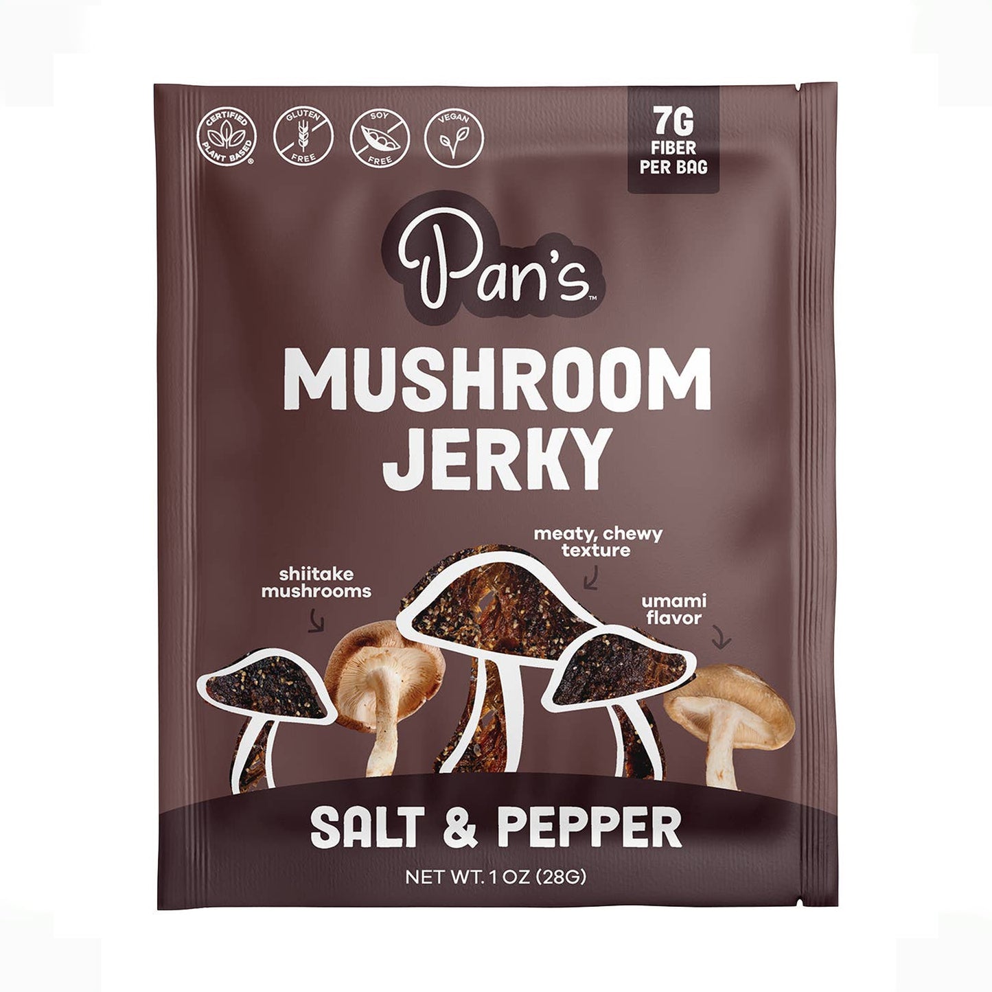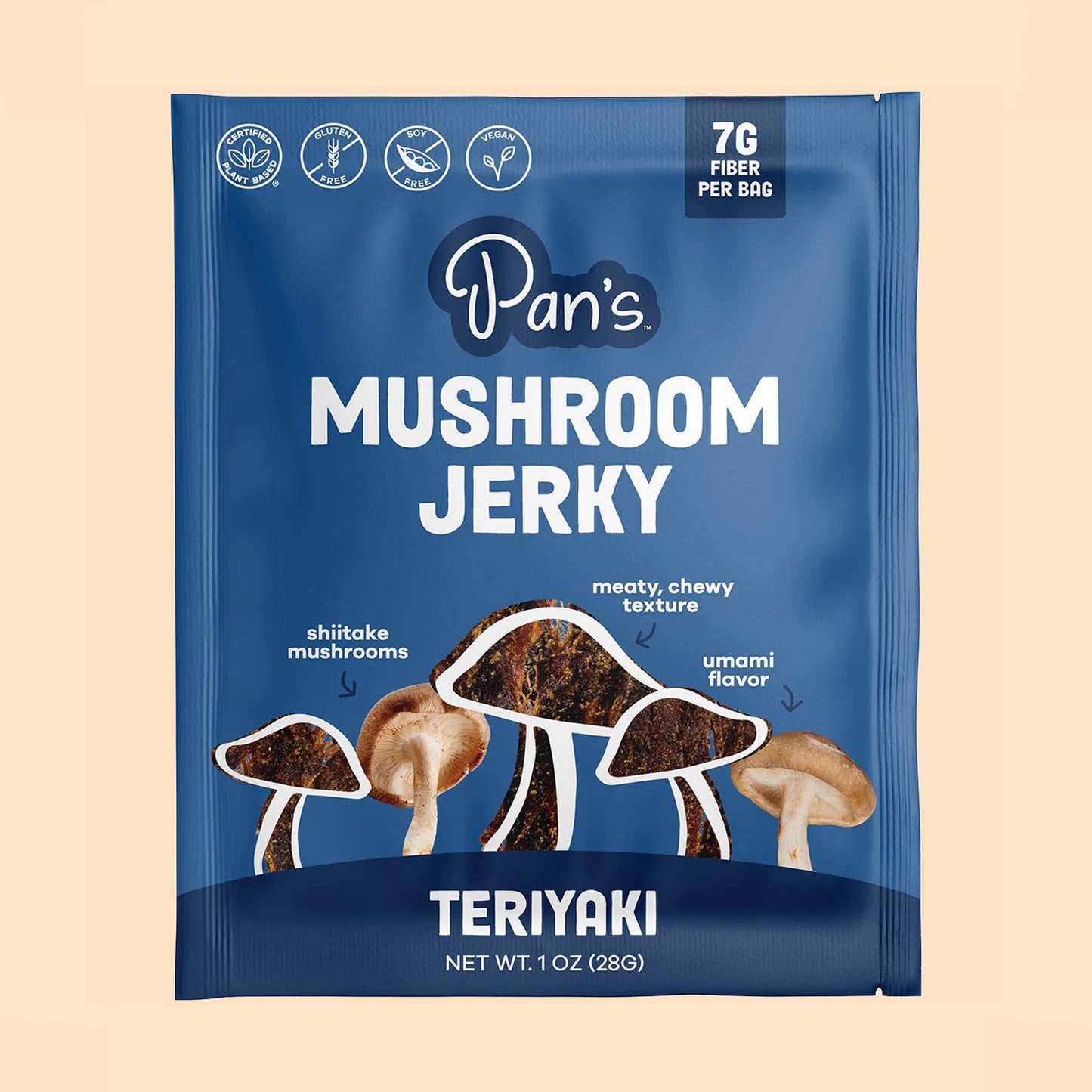 Made with shiitake mushrooms, Pan's Mushroom Jerky is vegan, high in fiber and vitamin D, paleo-friendly, Kosher, soy-free, gluten-free, and uses organic ingredients. 1oz bag
