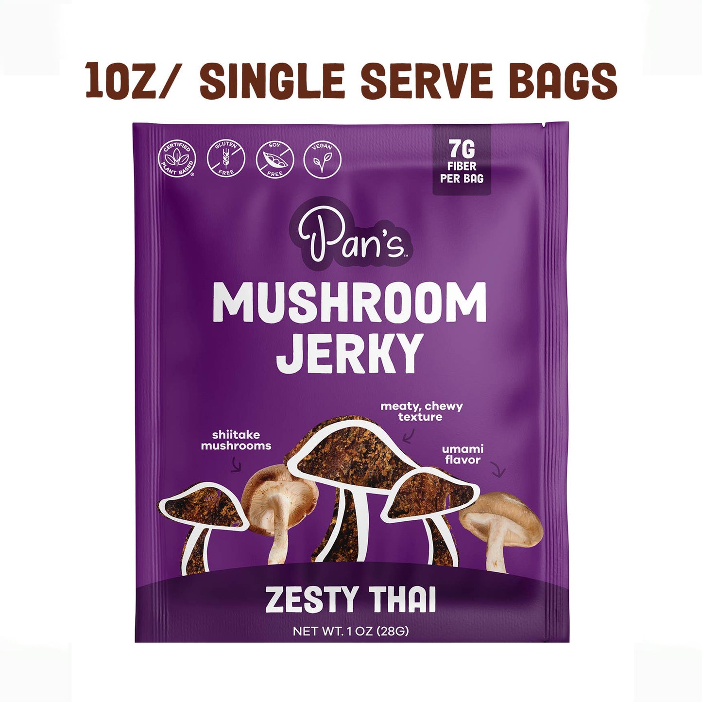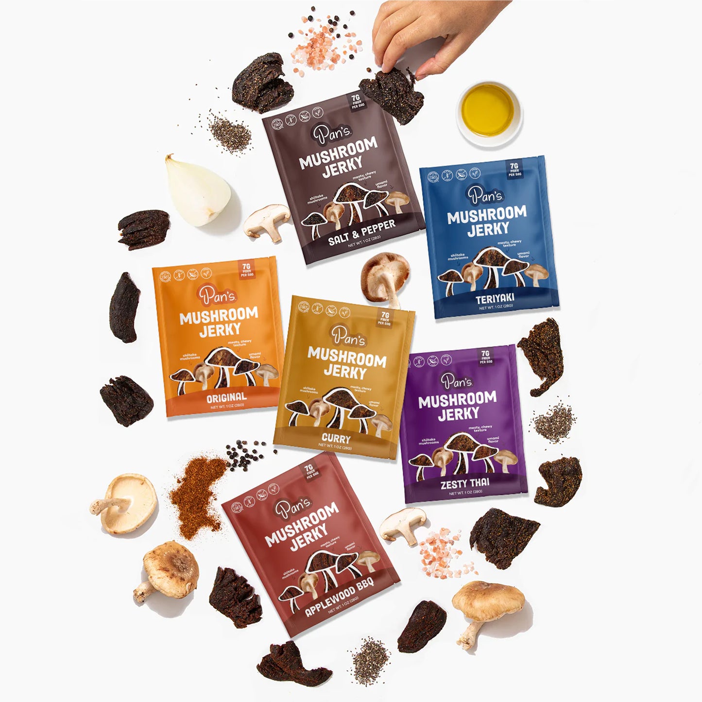 Pan’s Mushroom Jerky was launched in 2018 by Michael Pan, and is made in Portland, Oregon. On a trip to Malaysia, Michael discovered a decades old recipe in his family for the satisfying plant-based snack, which served as the inspiration for Pan’s Mushroom Jerky.