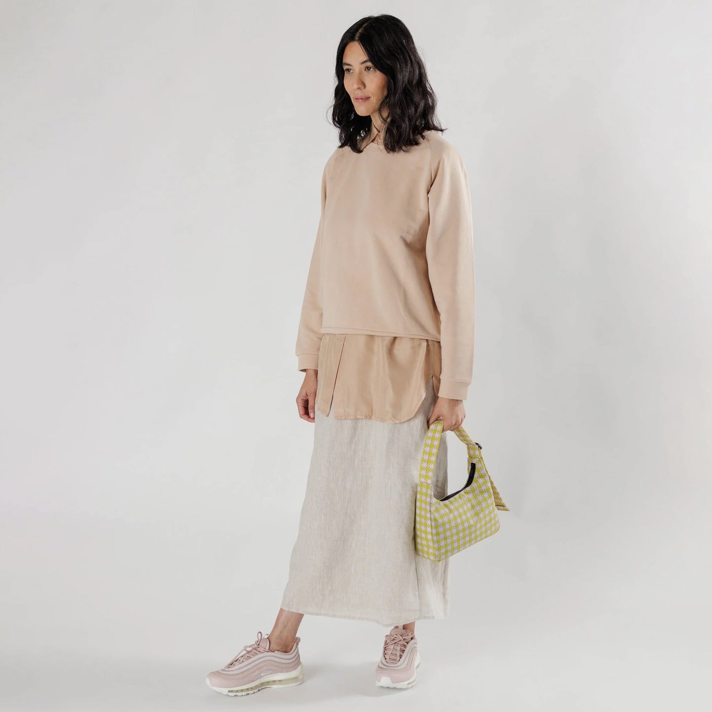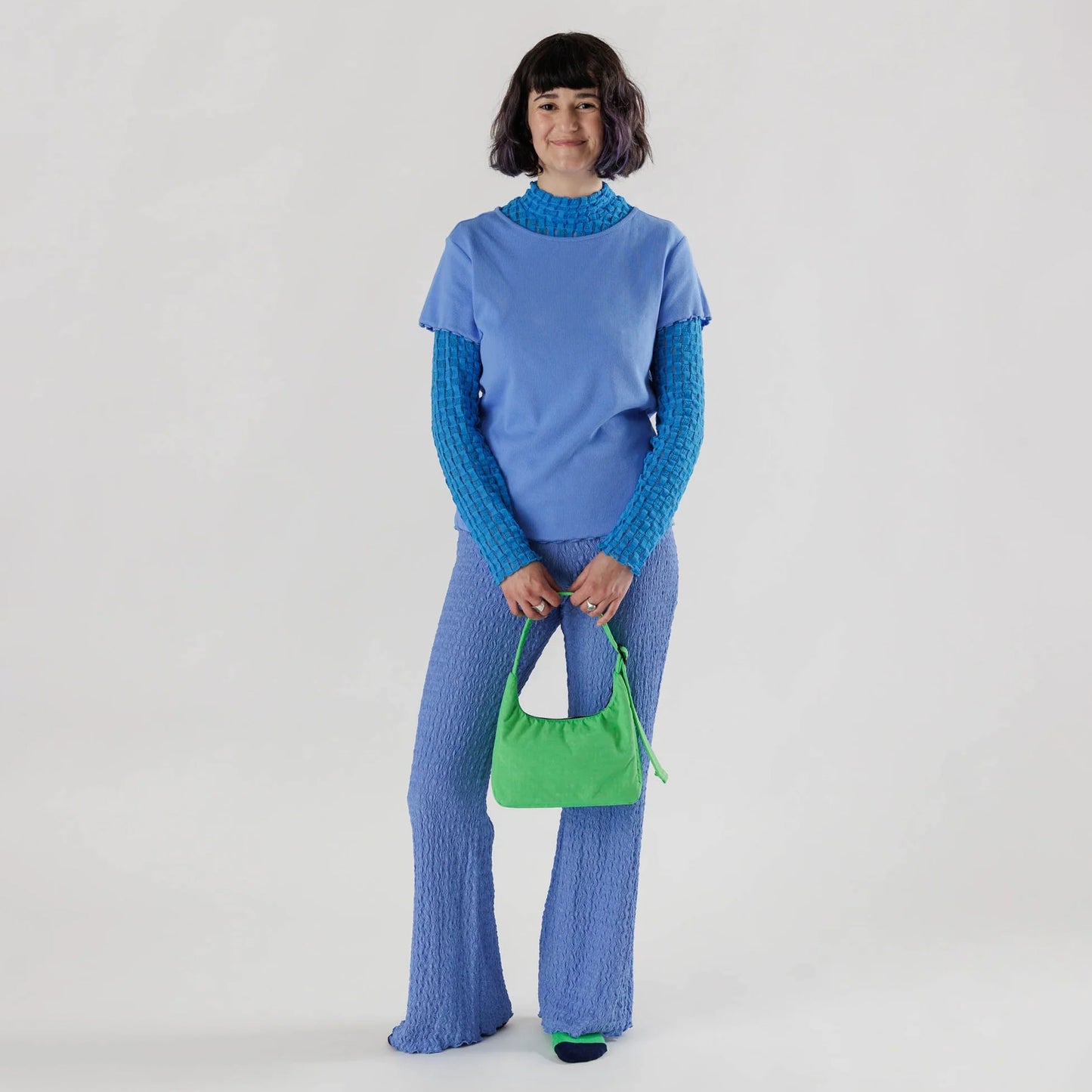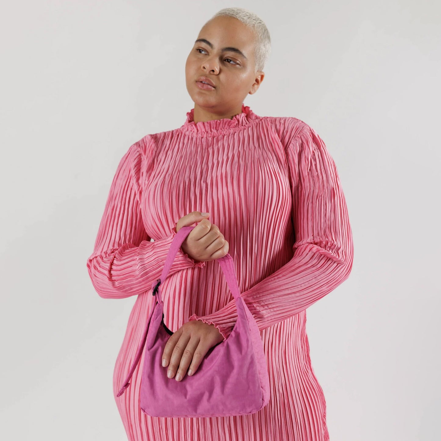 A mini version of Baggu's nylon shoulder bag. Slightly slouchy, slightly structured. Complete with an interior pocket so everything has a place.