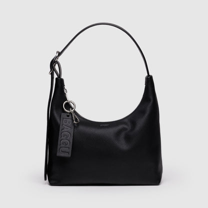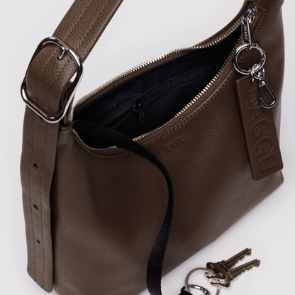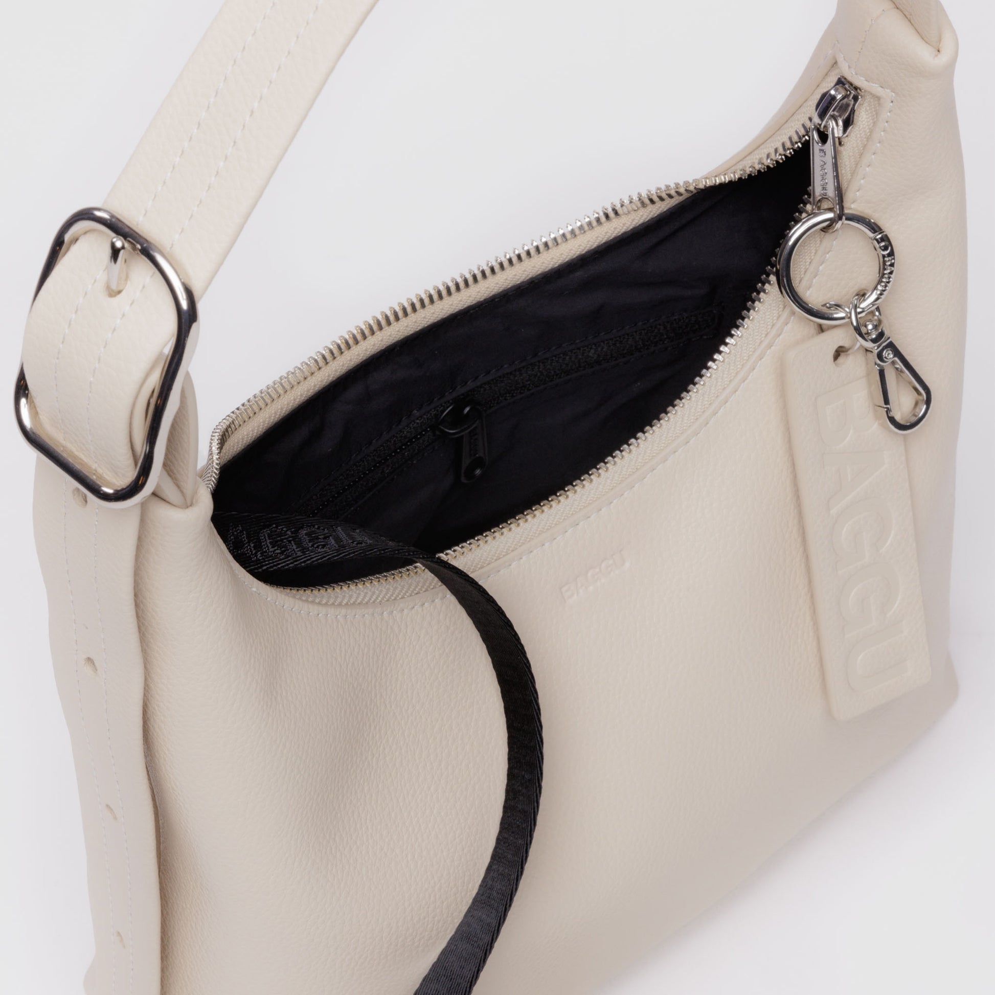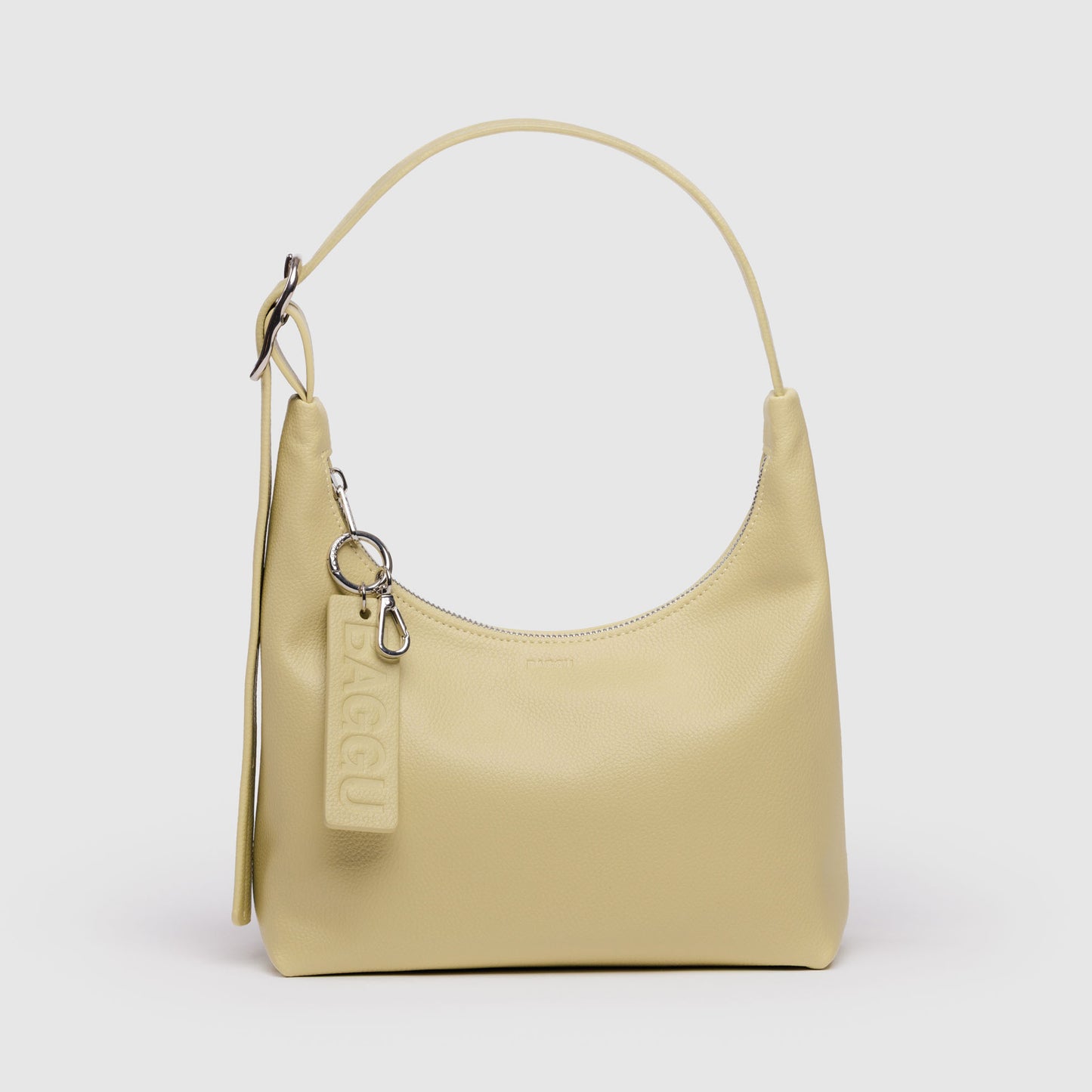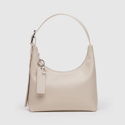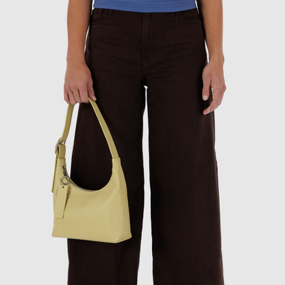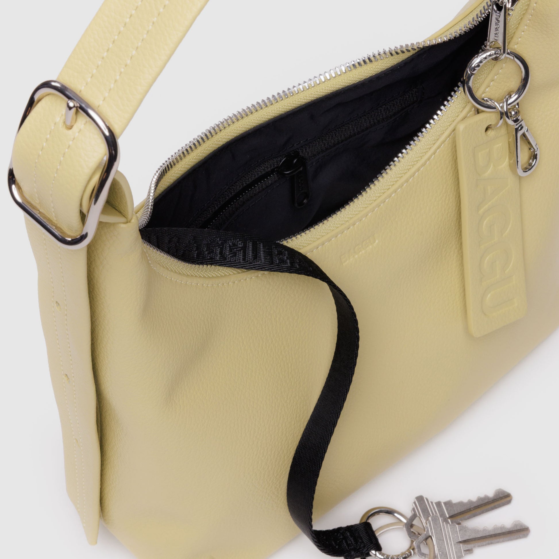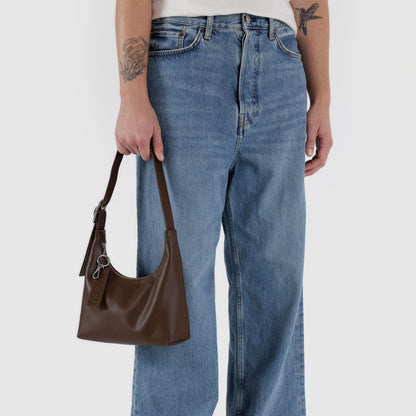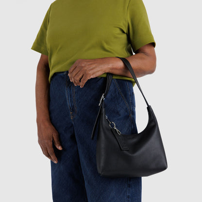 The most premium expression of BAGGU's mini shoulder bag. Crafted with simple, elegant lines and recycled leather that’s been fine-tuned for quality, style, and impact. The material upholds their durability and responsible sourcing standards alongside truly elevated details, like a signature grain, custom hardware, and recycled trims.