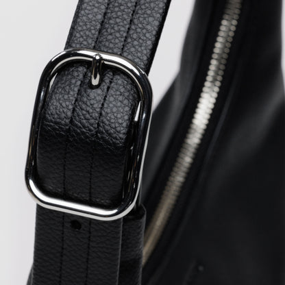- Wide-tooth zipper with logo-embossed 100% recycled leather pulls