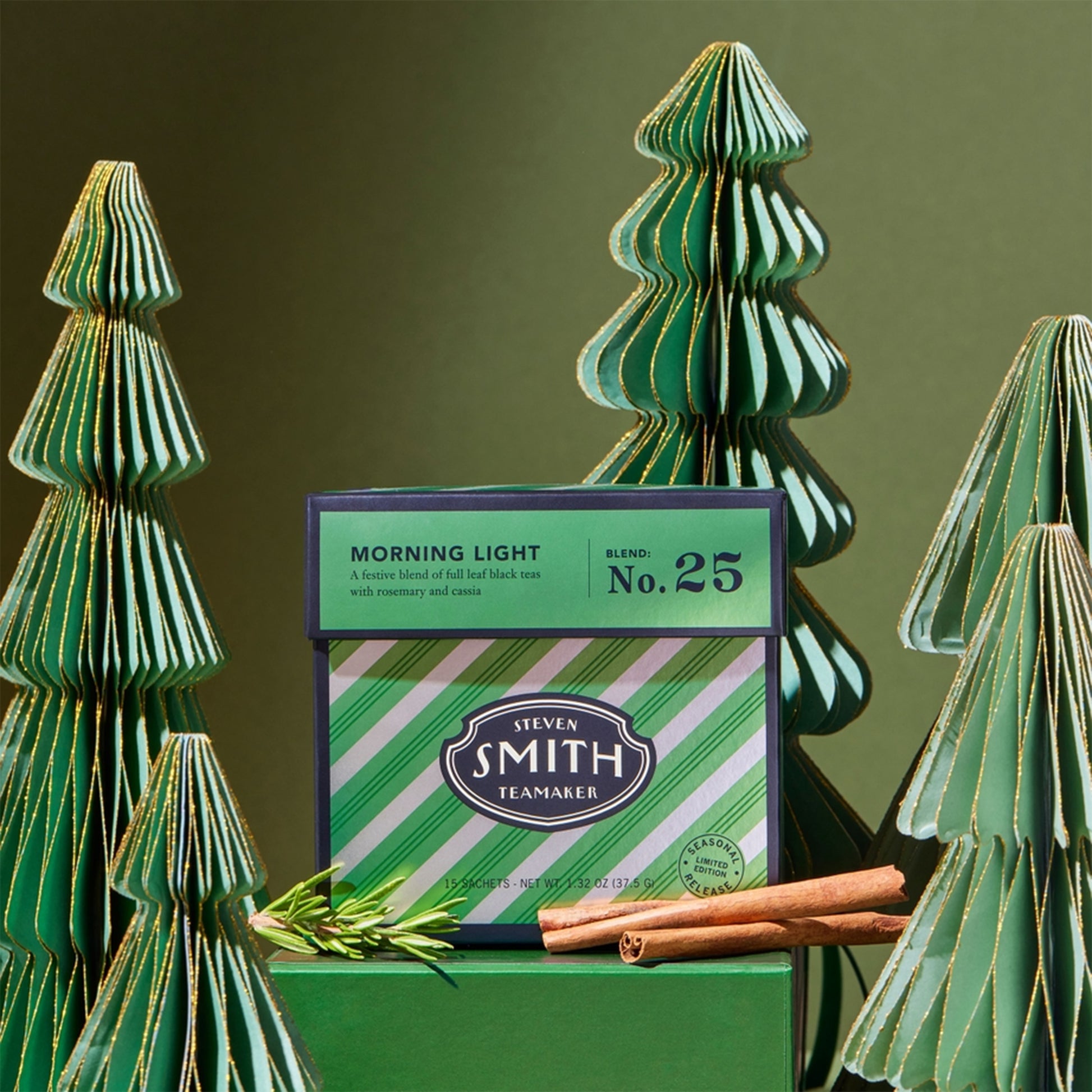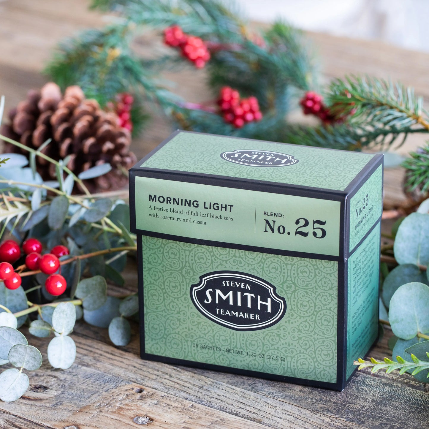 Awake to a festive gathering of delicious and highly sought after teas, combining flavorful Ceylons, rich North Indian Assam and high-grown Darjeeling teas with rosemary, black currant and a pinch of cinnamon. Whoa, Tannenbaum.