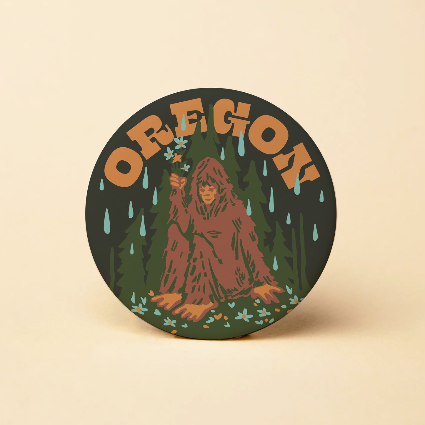 OR Believe Bigfoot Flowers Round Magnet