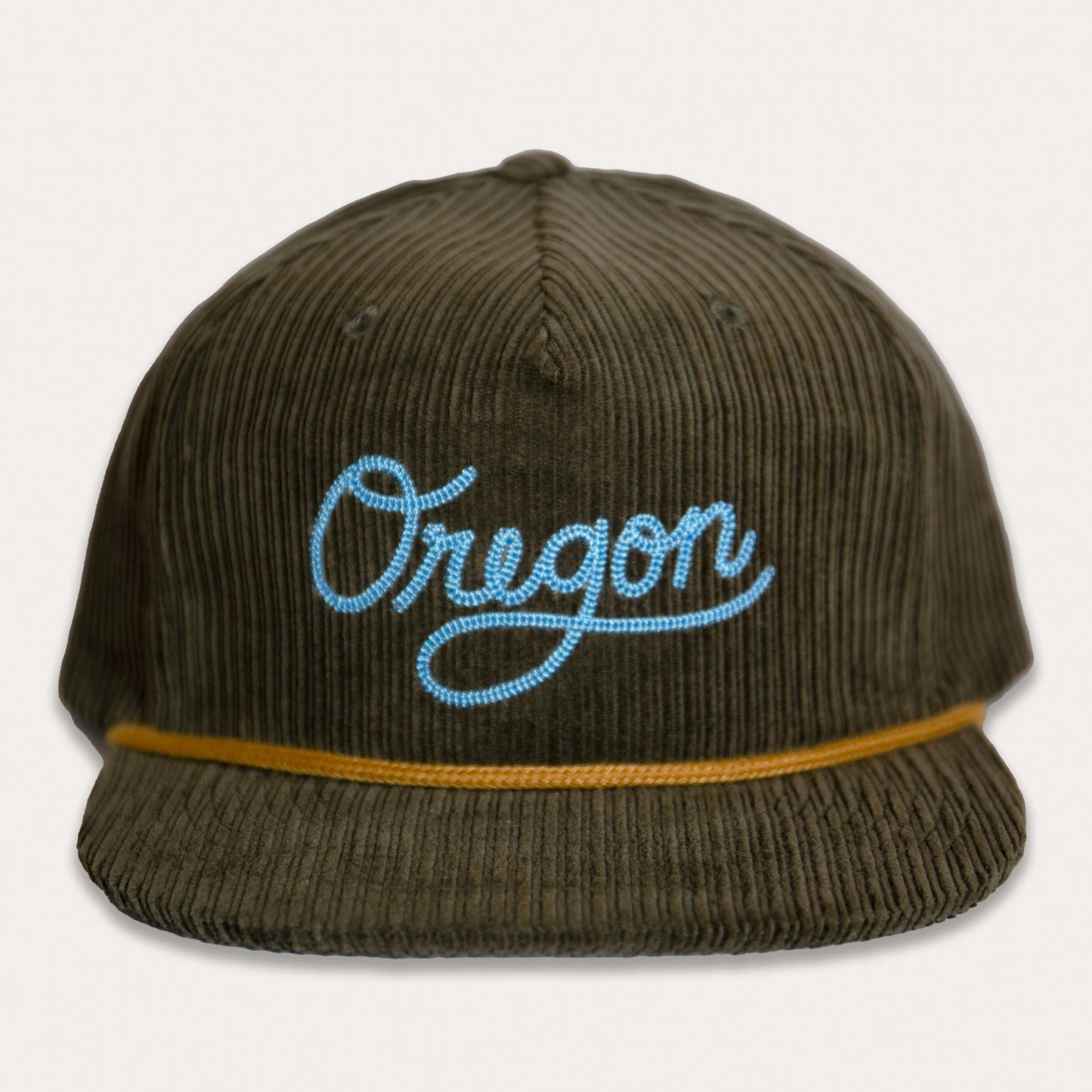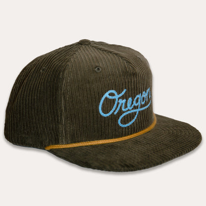 This embroidered, pinch front 5 panel hat features features wale corduroy, a grandpa structure, flat bill w/ 5mm rope detail and a classic snapback.