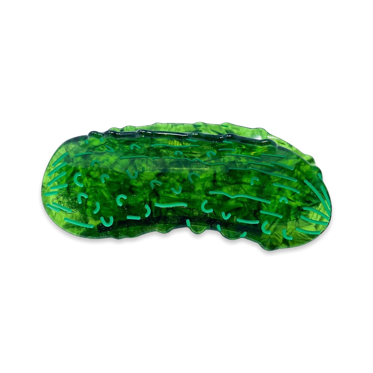 This pickle hair claw packs a punch of tangy style! Get a grip on your 'do with this pickle-shaped hair claw made from cellulose acetate, a plant-based replacement for plastic.