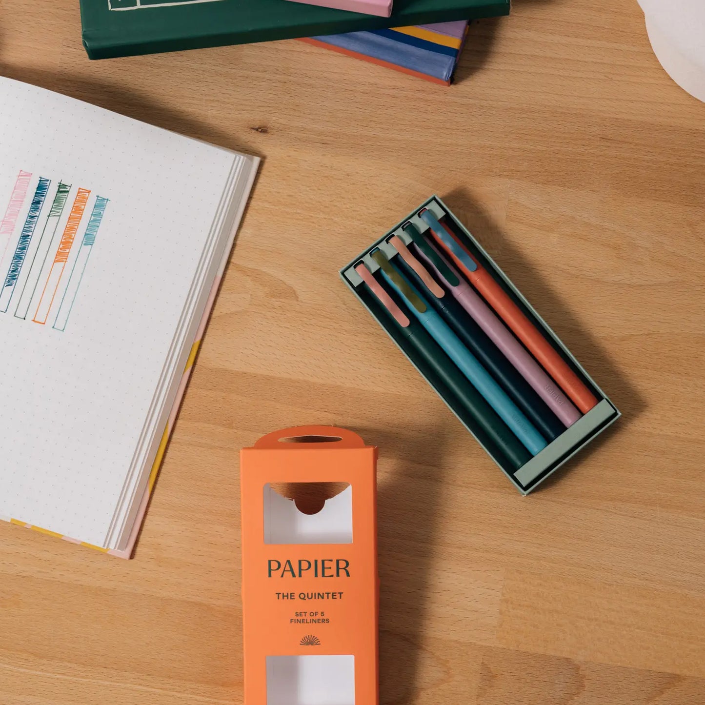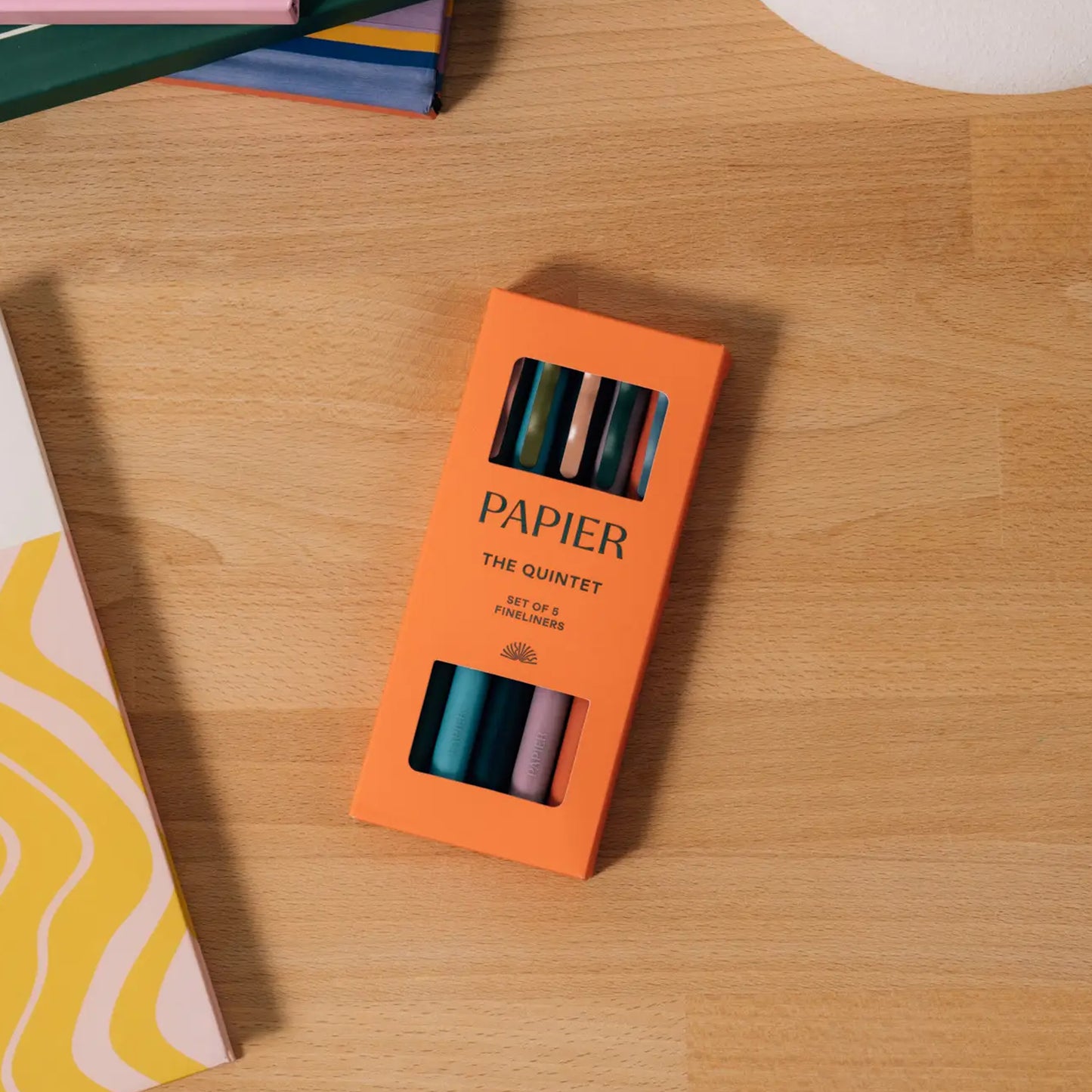 For Monday's memos and Friday's festivities. Papier's Quintet fineliners give you a free-flowing, fun experience on the page. With five bright shades packaged in a special pouch, it's time to add some color to your sketches, notes and to-dos.