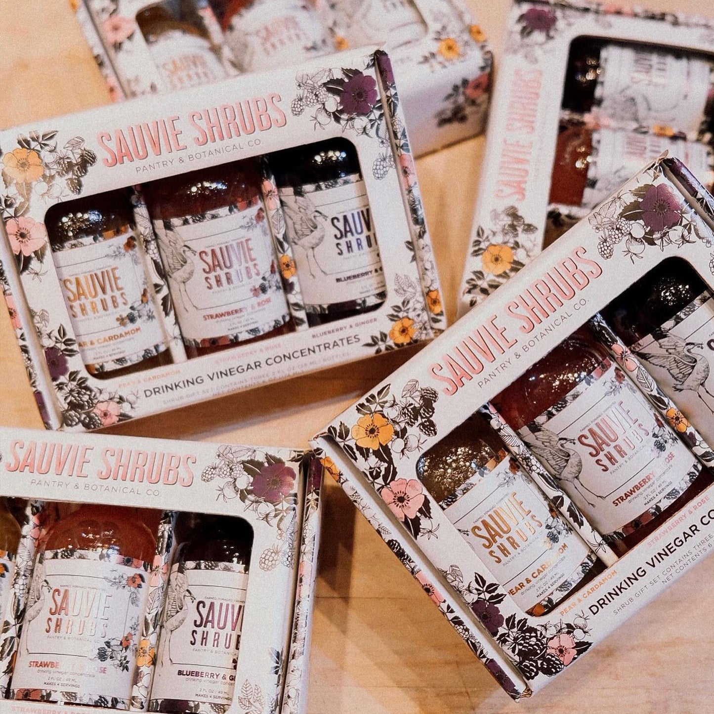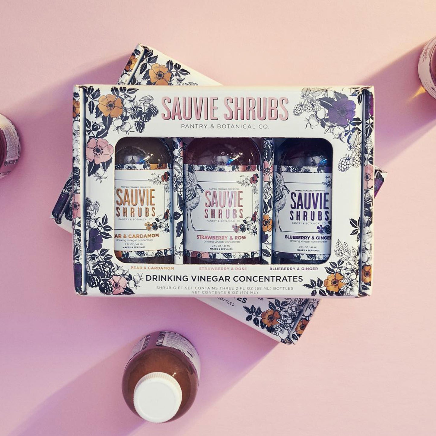 Try a sampling of Sauvie Shrubs three signature shrubs in this beautiful botanical gift box. Each gift box contains three 2 oz bottles (4 servings each) of their Pear Cardamom, Strawberry Rose, and Blueberry Ginger shrubs as well as three unique recipes for a marinade, cocktail and salad dressing. This shrub sampler is perfect for those that are new to shrubs and also makes an excellent gift.