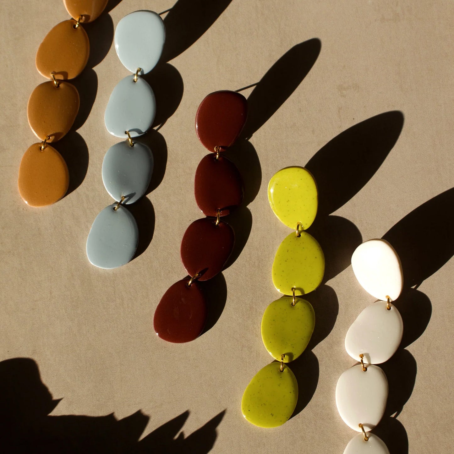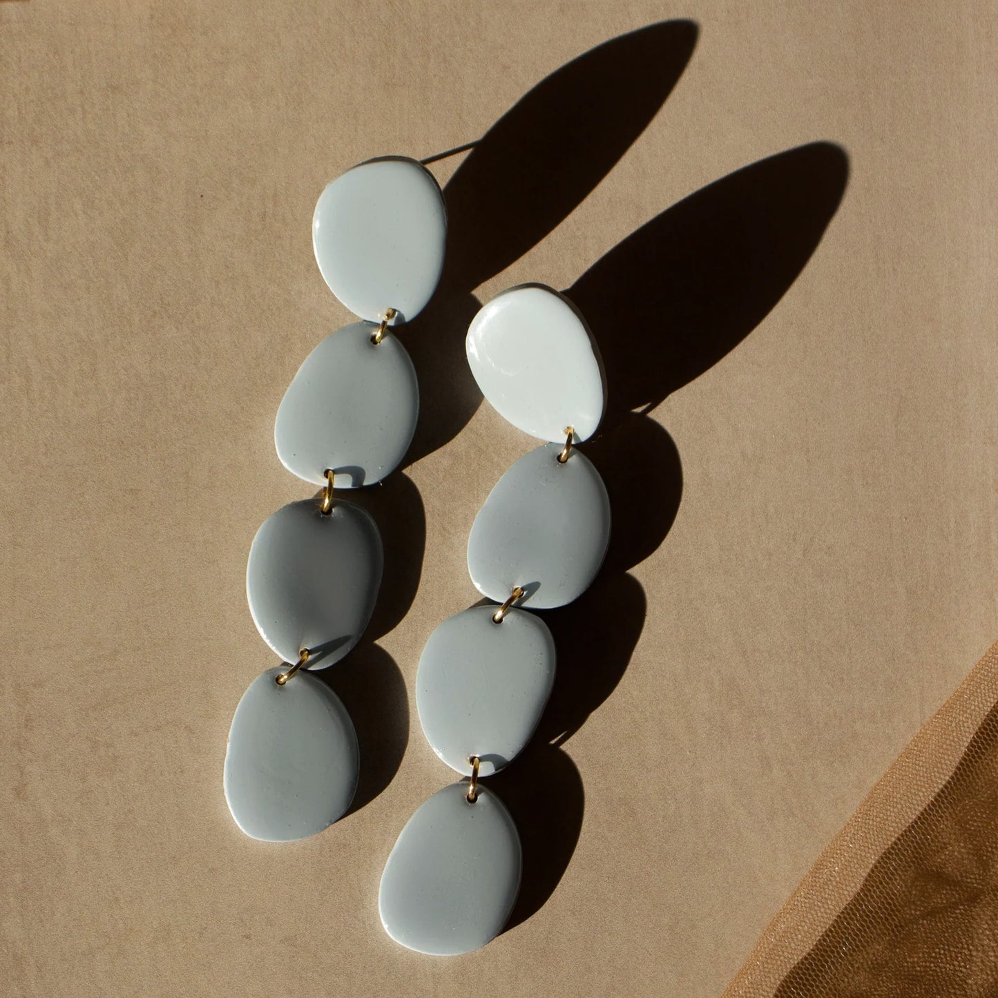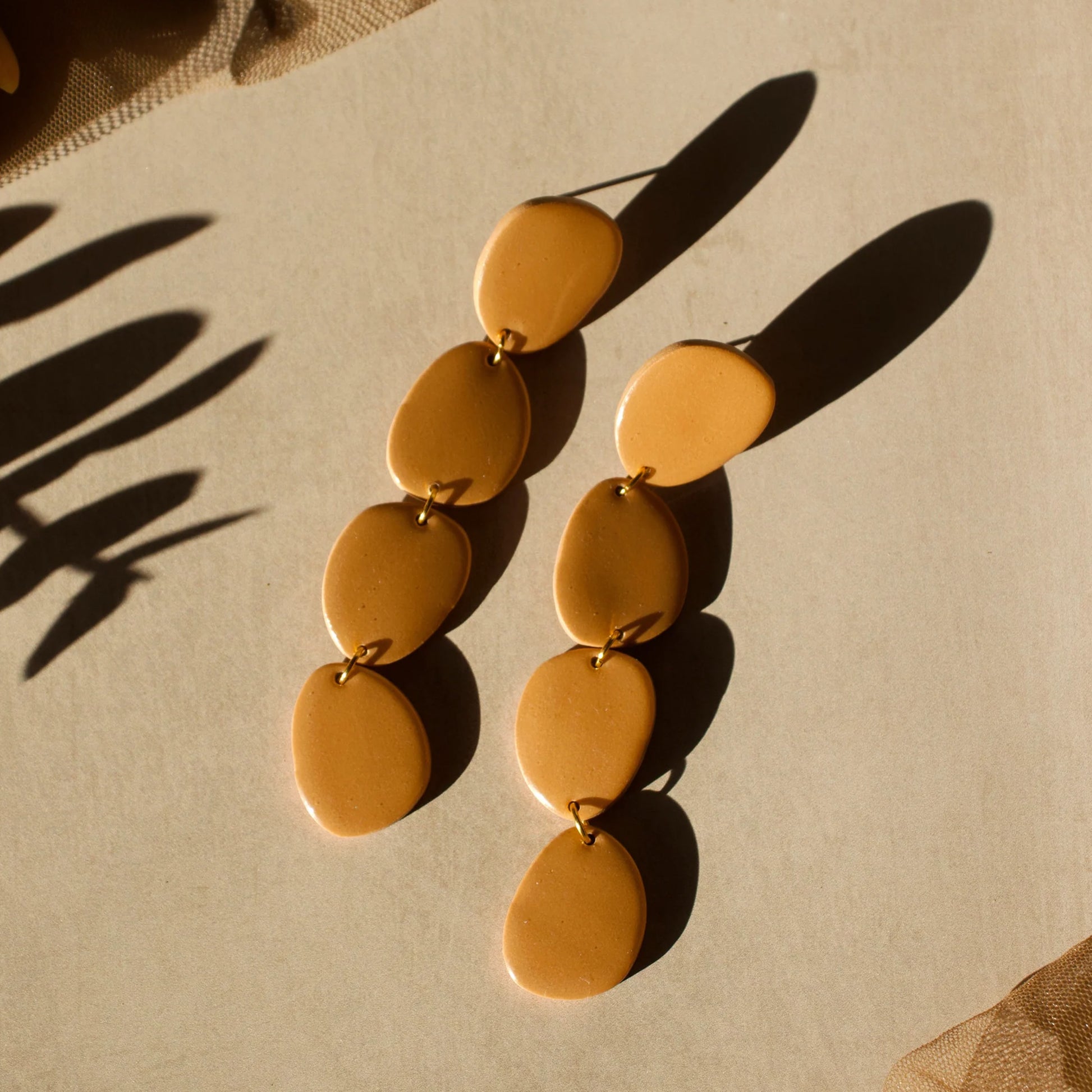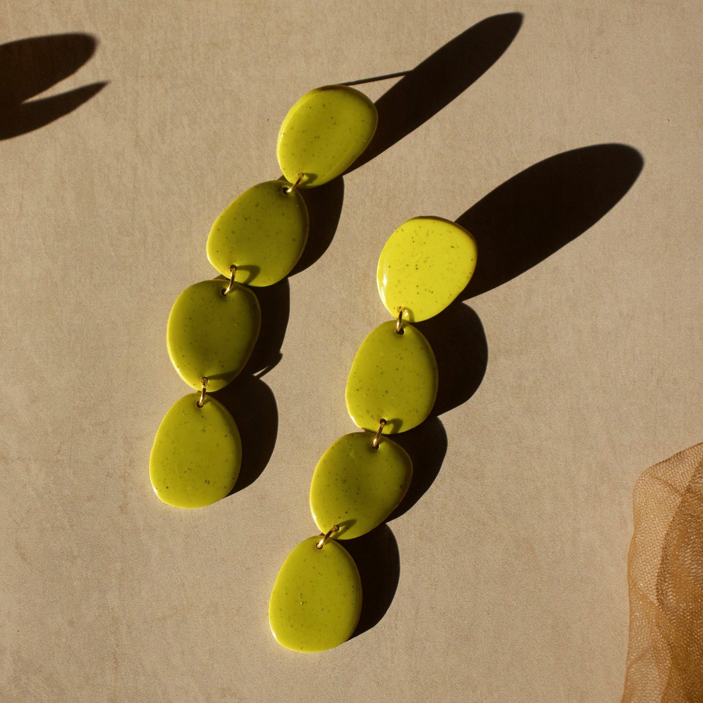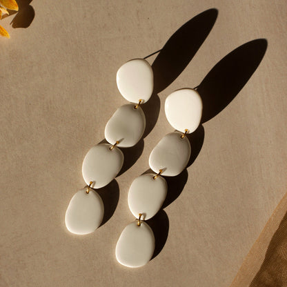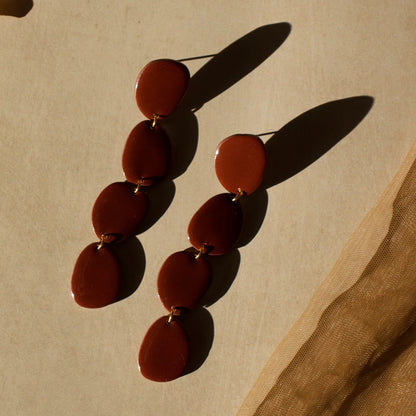 Handcrafted with polymer clay, each pair is made with stainless steel flat earring posts and finished with resin for a nice shine. Measures 4 inches long.