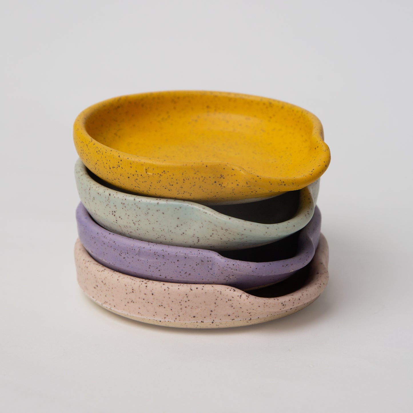 Hand crafted by Katie M. Mudd with a soft speckled clay and finished in a satin glaze make it velvety smooth.