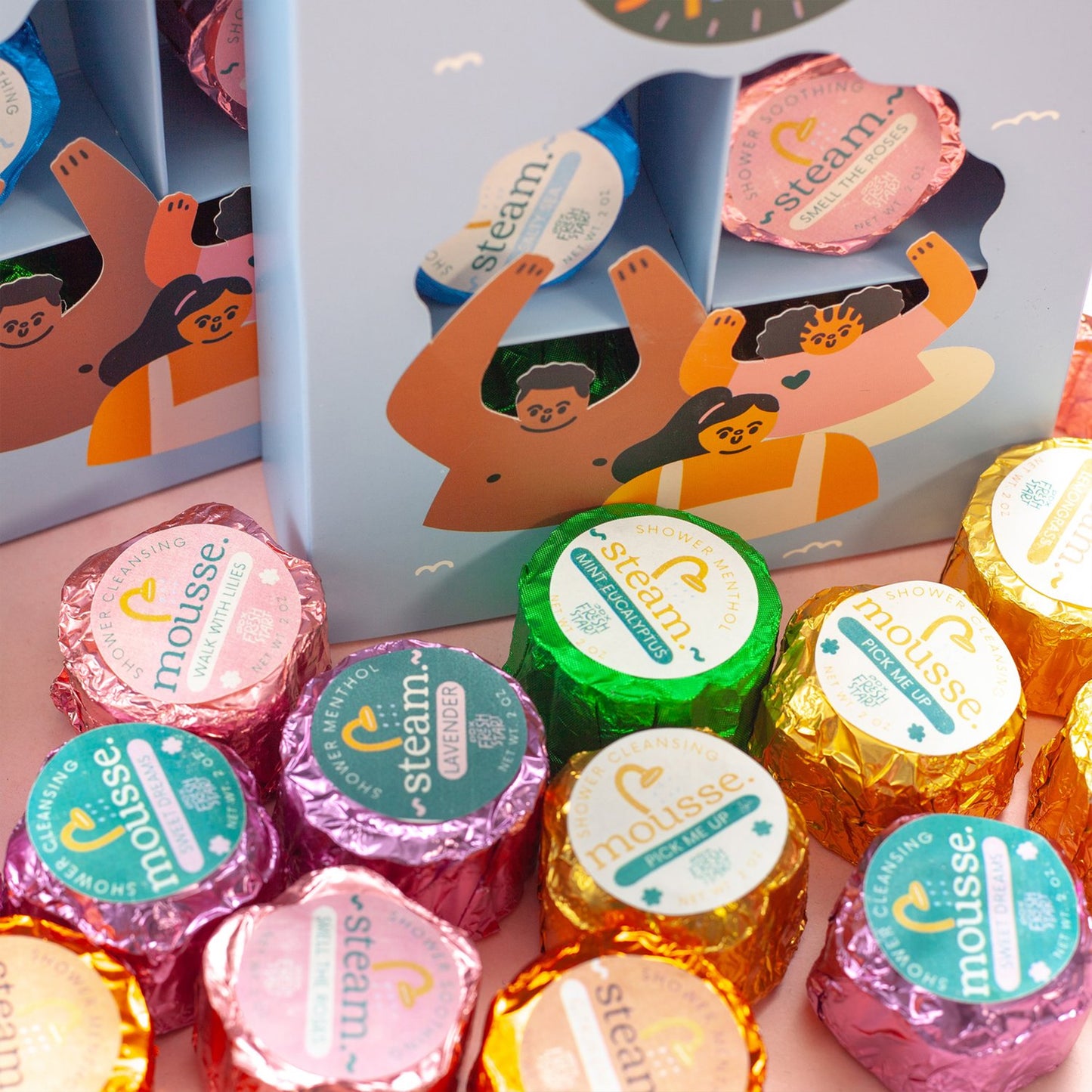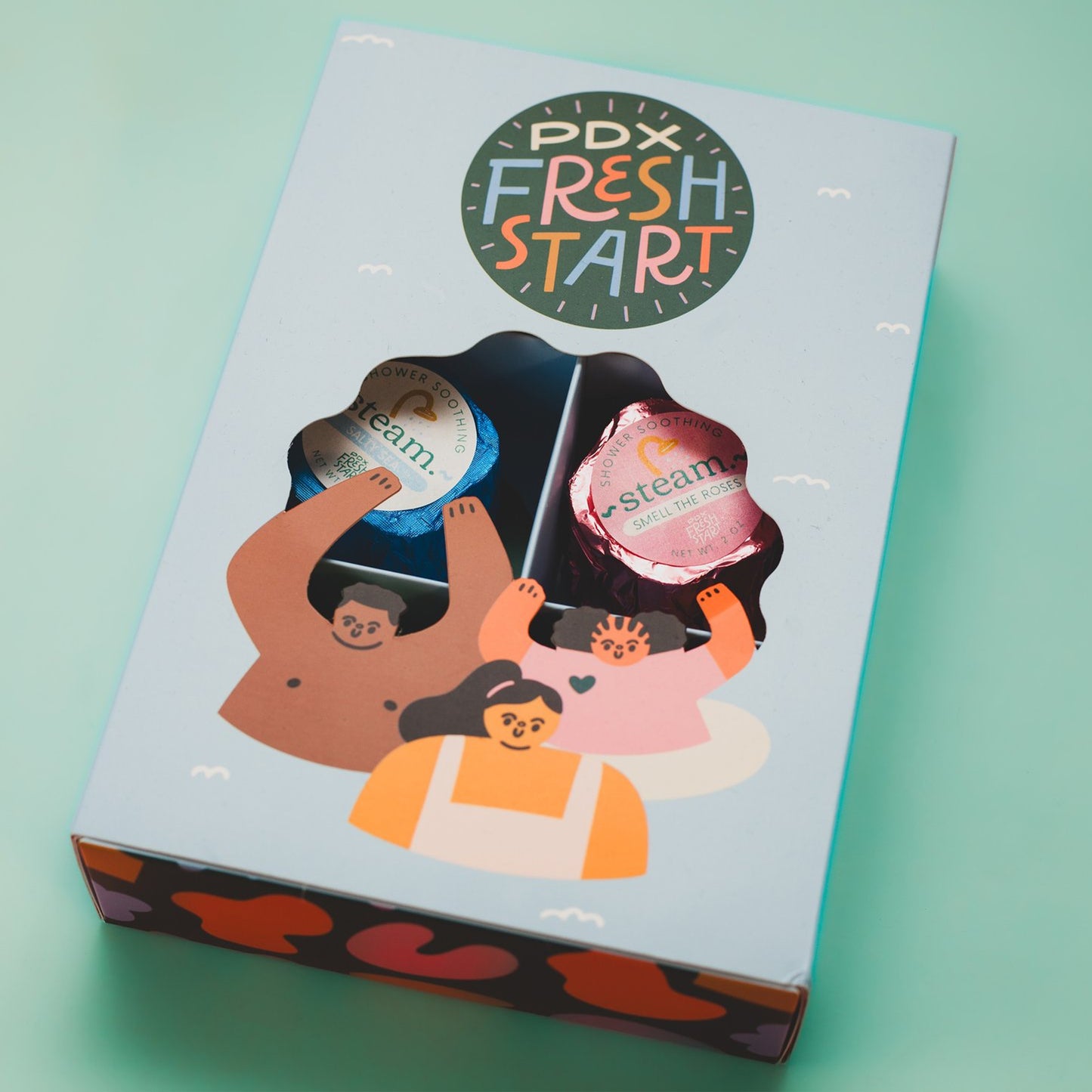 Relax in a refreshing shower as scented steam fills the air and invigorates your senses. Seamlessly build self care into your daily shower routine. Can’t decide between scents? Try all 6 of our scents in an adorable gift box with art by PDX artist & designer Courtney Ahn.