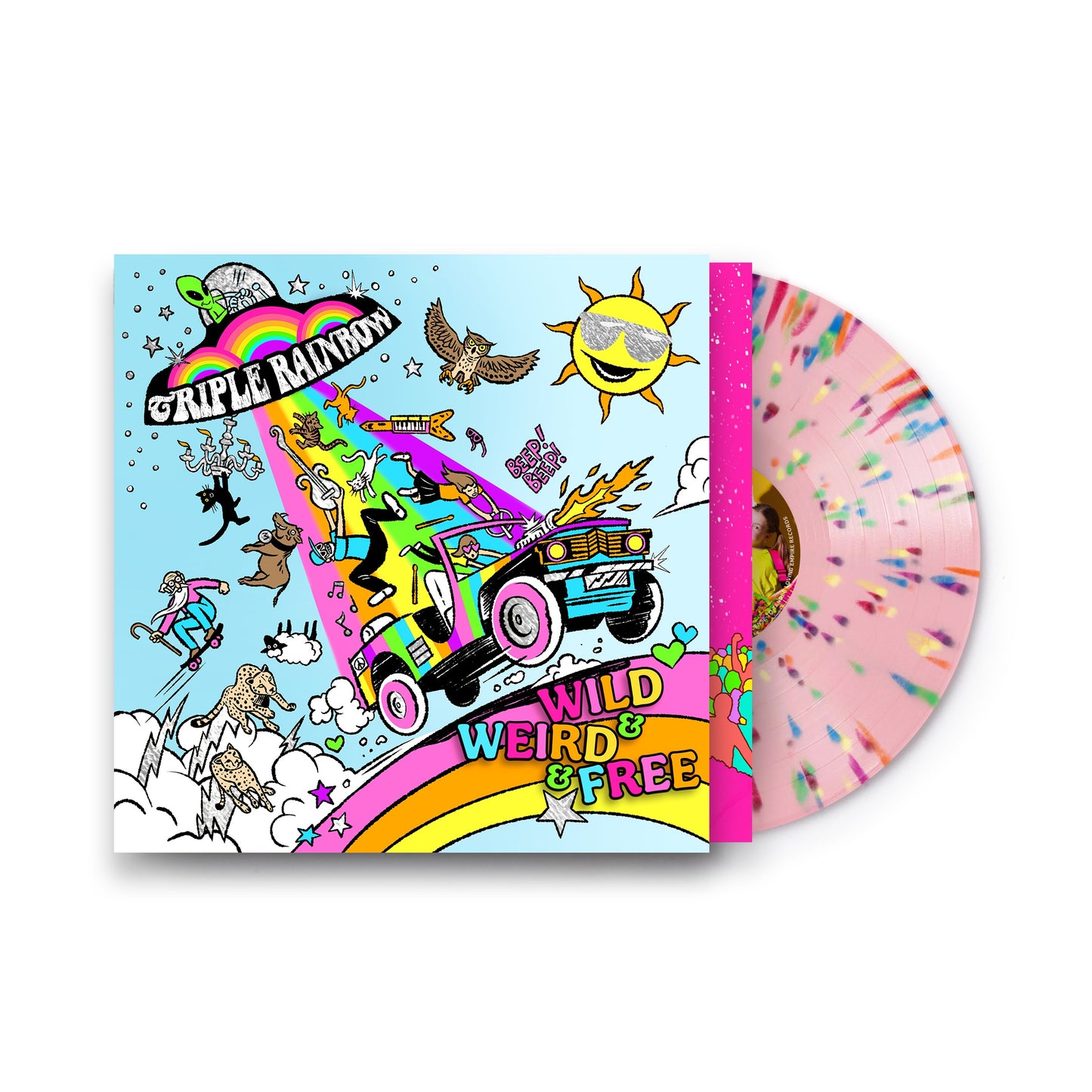 Triple Rainbow's 2nd studio album - Wild & Weird & Free is an eclectic, ruckus dance party on wax. Made up of Tender Loving Empire co-founder, Jared Mees, and his daughters --11 year old July Mees and 6-year-old Piper Mees. Born in the family garage during the pandemic, Triple Rainbow has come to be known for its colorful cardboard instruments, hilarious and sweet homemade music videos, and an unmissable live show. Recently, the band has performed live across the Pacific Northwest at festivals like Pickathon and Treefort Fest in support of their first album You Are Magic. Triple Rainbow puts on an uplifting and visually stunning show complete with guest appearances, onstage antics, and a homemade lights and props show that is not to be missed.