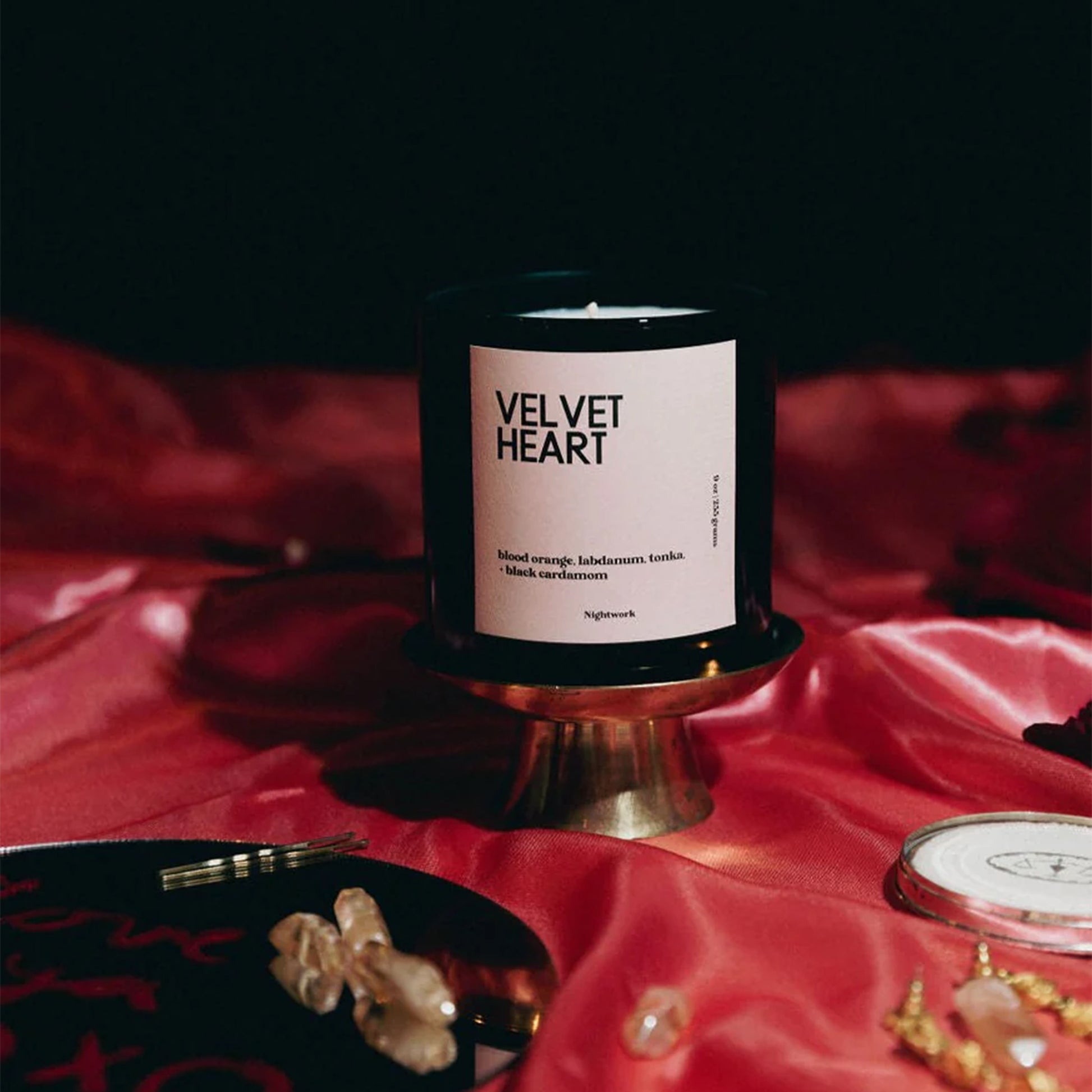 Velvet Heart overlooks the cityscape from the penthouse window, a secret so close to discovery yet entirely untouchable. Cashmere kisses hug her skin like cozy sweaters, exposing her collar bone to the morning sun. Baby’s Breath lives in the crystal vase near her bedside and emits a residual energy of black cardamom and lavender.